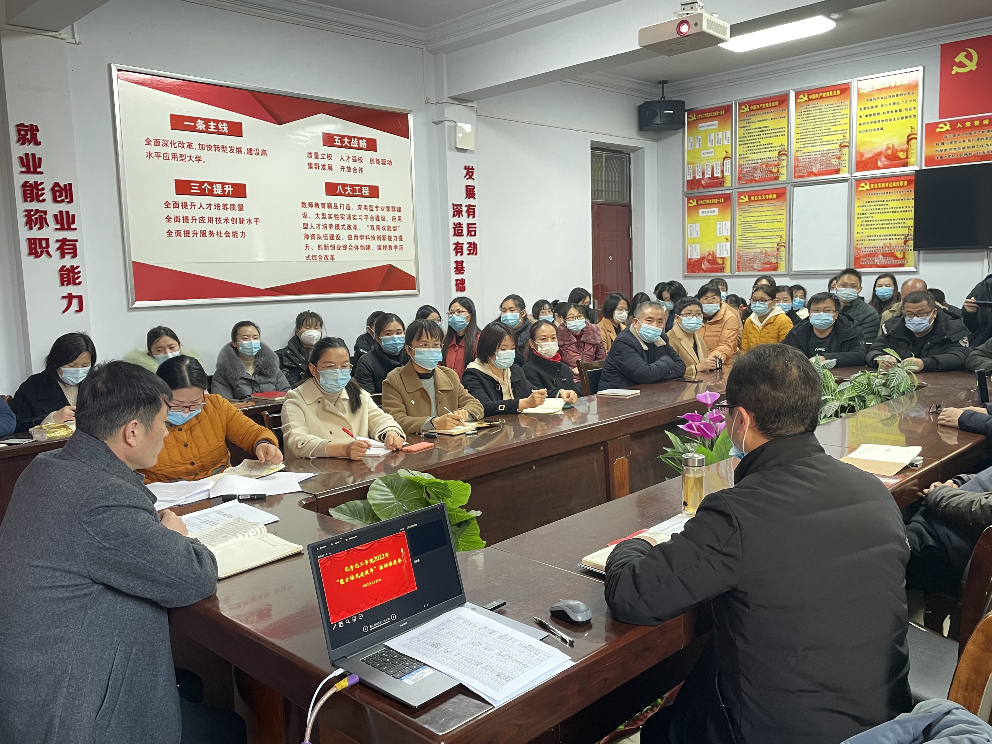 2022年2月25日,beats365唯一官方网站在睢阳校区7号楼会议室召开“能力作风建设年”活动推进会,公司党委书记李海涛、党委副书记张颜梅、副经理王涛以及全体教职工参加会议。会议由李海涛主持。