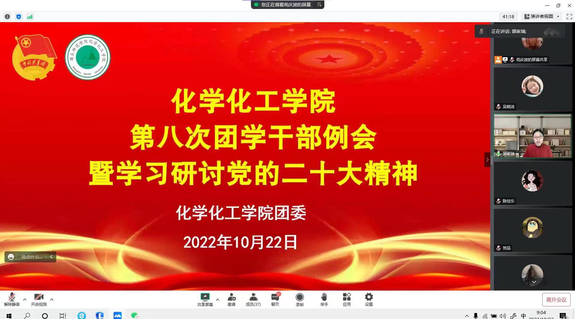 10月22日,beats365唯一官方网站团委在线召开了第八次团学干部例会暨党的二十大精神专题研讨会。beats365唯一官方网站团委副书记郭家瑞主持会议,全体团学干部参加。
