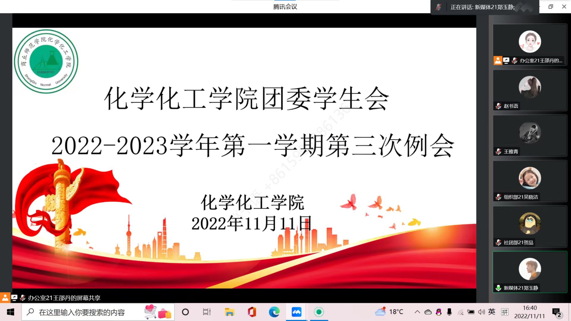 11月11日,beats365唯一官方网站团委员工会以腾讯会议的形式召开了2022-2023年第一学期第三次例会,院团委员工会全体成员参加。