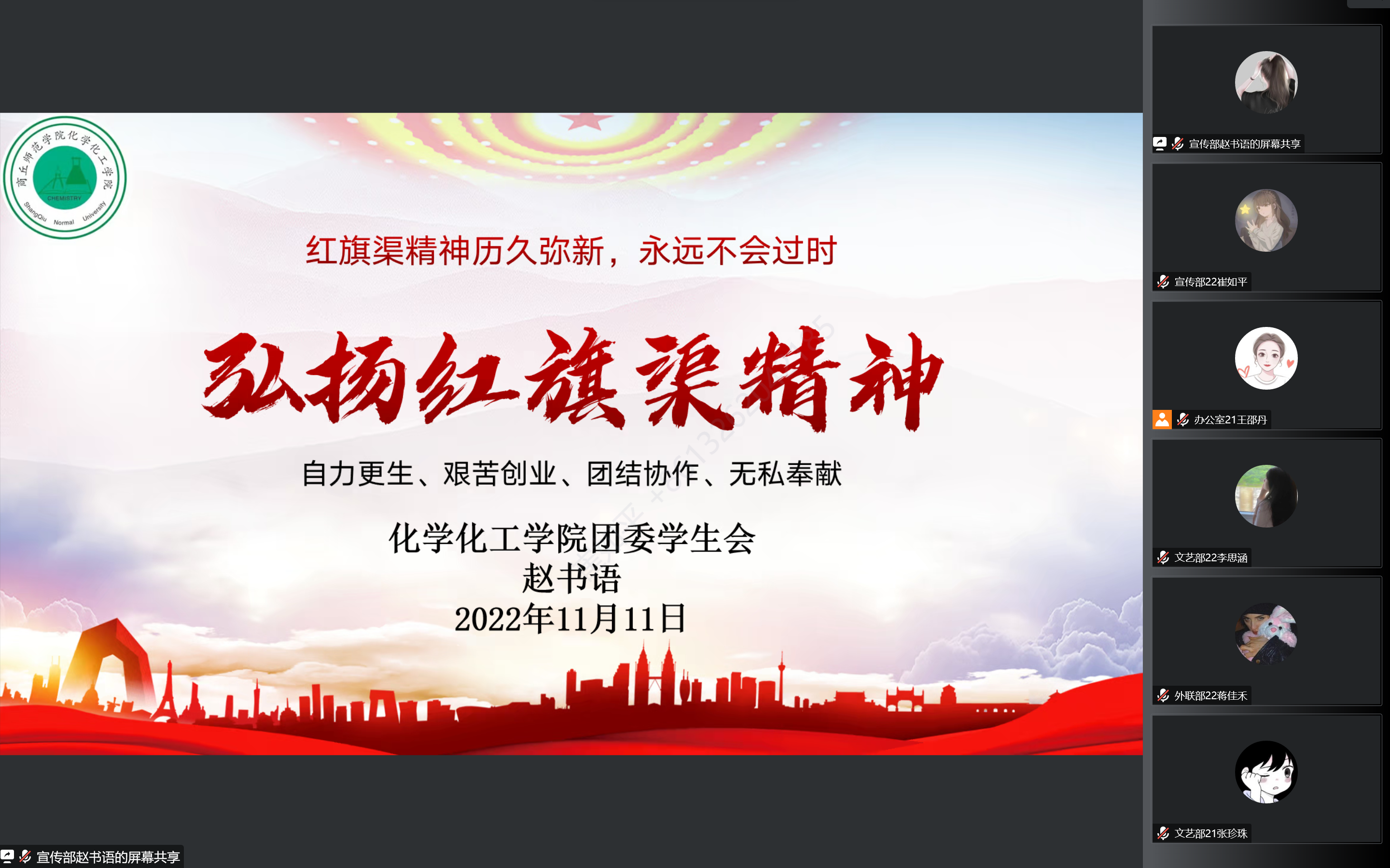 会议上,首先由宣传部负责人赵书语带领大家进行了以“弘扬红旗渠精神 ”为主题的理论学习,从红旗渠精神的历史背景、主要内涵和时代价值三个方面讲解了红旗渠精神,旨在引导大家学习和弘扬自力更生、艰苦创业、团结协作、无私奉献的红旗渠精神。之后各部门负责人汇报了近期工作情况及下一步工作计划,其中宣传部和新媒体中心共同开展的“我读我抄党的二十大报告 ”正有序的进行中;组织部和学习部开展的书写技能比赛初赛接近尾声……最后执行主席王雅青对员工会值班、员工会例会等工作提出了要求。