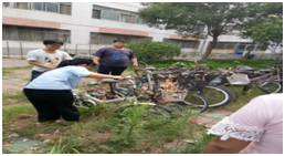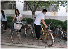乱停自行车会造成交通拥挤,影响了人们的出行,甚至造成安全隐患。活动期间,对取车用车的同学进行引导,使大家都摆放到规划的区域内。活动结束后,各式各样的自行车整齐的站立着形成了一道亮丽的风景线。