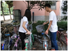 通过志愿者们几天擦洗和摆放自行车,使我们的校园变得更加整洁有条理,方便了那些需要车位的人。同时让更多的人感受到爱护自行车所带来的好处。自行车不是我们的奴隶,而是我们的伙伴。我们不能像奴隶一样去使唤他,压榨它的全部价值,而不给它一分好处。他需要我们的呵护,我们需要它的速度,这是一个合作共赢的事情。