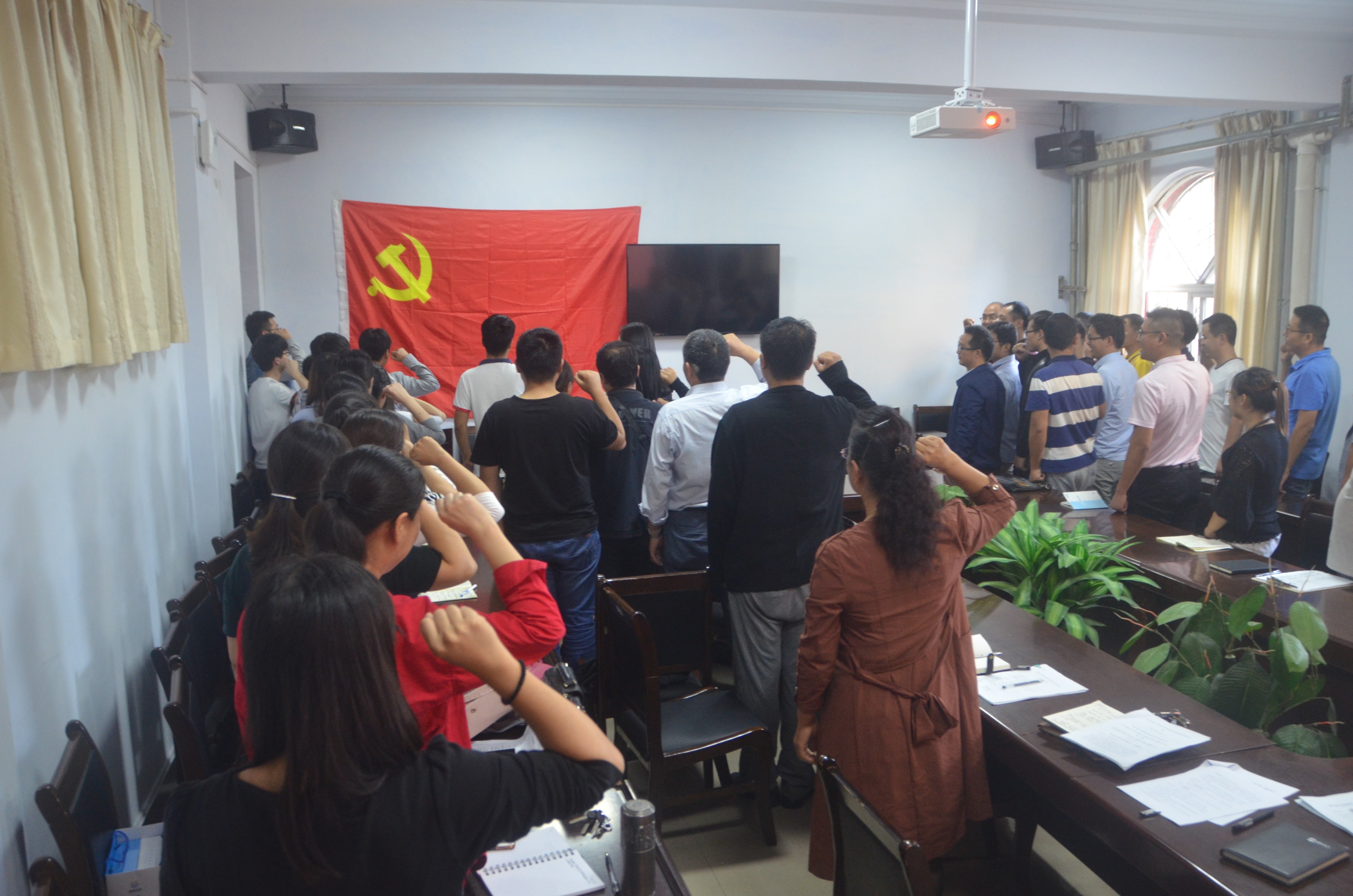 为庆祝伟大祖国的68岁华诞、迎接党的十九大胜利召开,9月29日,公司于公司文化路校区7号楼会议室召开了以“砥砺奋进,党员当先锋,筑梦中国,喜迎十九大”为主题的党日活动,公司党总支书记韩忠民、经理瞿鹏、党总支副书记刘瑛、副经理孟团结出席了此次活动。公司全体师生党员参加了此次活动。活动由韩忠民书记主持。
