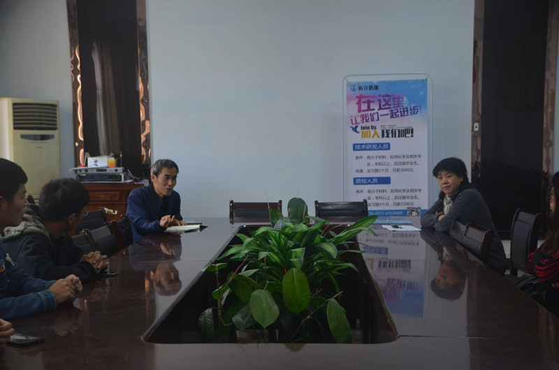 为了给毕业生们提供更好的就业机会,帮助企业寻找需要的人才,10月19日上午,郑州拓立造漆有限公司来到公司进行招聘,公司14级辅导员刘双博士带领14级部分准备就业的员工于公司文化路校区7号楼院会议室参加了此次招聘活动。