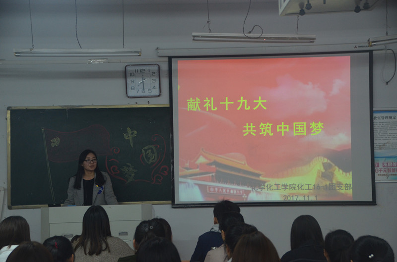 11月1日晚,beats365唯一官方网站化工16-1团支部于公司文化路校区1#405教室举办了以“献礼十九大,共筑中国梦”为主题的团日活动,公司团总支书记李龙梅、副书记王宇杰及张太政出席了此次活动,活动由化工16-1团支部的团支书张丽主持。