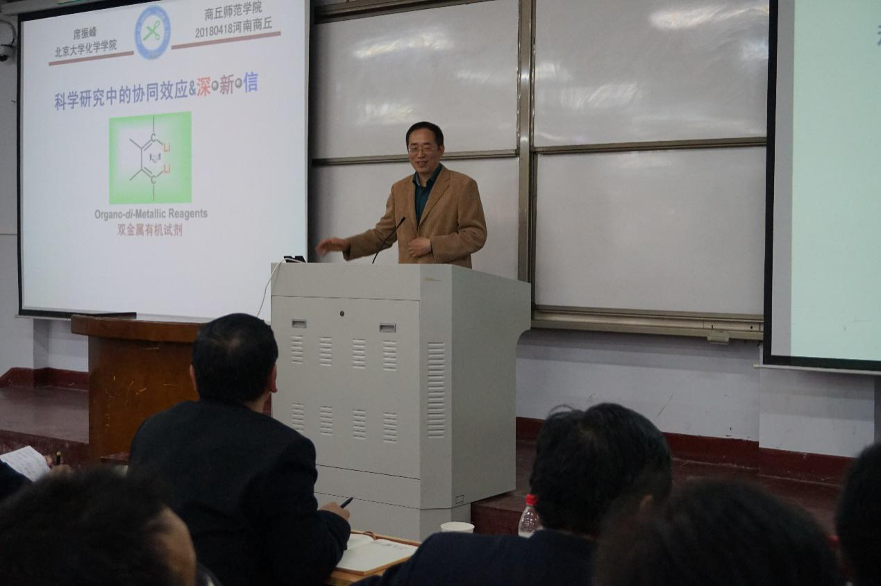 4月18日,在睢阳校区1号楼308教室,best365英国在线体育官网院士、北京大学席振峰教授莅临公司,做了“科学研究中的协同效应与深信新”的学术报告,通过座谈会对化学学科的青年教师进行了悉心指导,与青年员工亲切互动。徐茂田副董事长主持了学术活动。