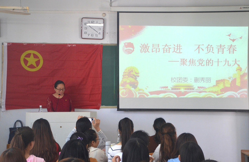 4月19日上午十点,beats365唯一官方网站于文化路校区1#411教室开展了“激昂奋进,不负青春——聚焦党的十九大”主题团课教育活动,主讲人为公司团委副书记蒯秀丽。17级辅导员郭家瑞老师及新能源16-1团支部全体同学参加了活动,活动由beats365唯一官方网站团总支书记李龙梅主持。