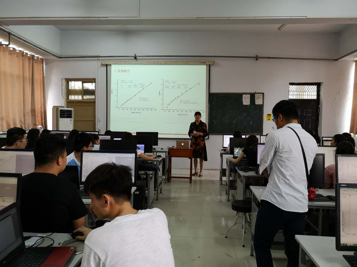 本次公开课以“Origin中的数学运算”为例进行课堂展示,主要讲解Origin中的微分、积分、曲线平滑和线性拟合的基本操作。员工独立操作贯穿整个教学过程,每讲解一项,提供一个实例,员工根据指令现场操作,教师巡回逐一解决员工遇到的问题,员工结合课前预习通过小组讨论完成实例练习。在此基础上,教师逐渐引入新的操作技能,综合巩固练习,增强学习效果。在整个课堂的教学过程中,员工动手参与时间长,充分调动了员工的积极性,把教师的主导作用和员工的主体作用有机结合起来,体现了以员工为主体的教学理念,取得了较好的学习效果。