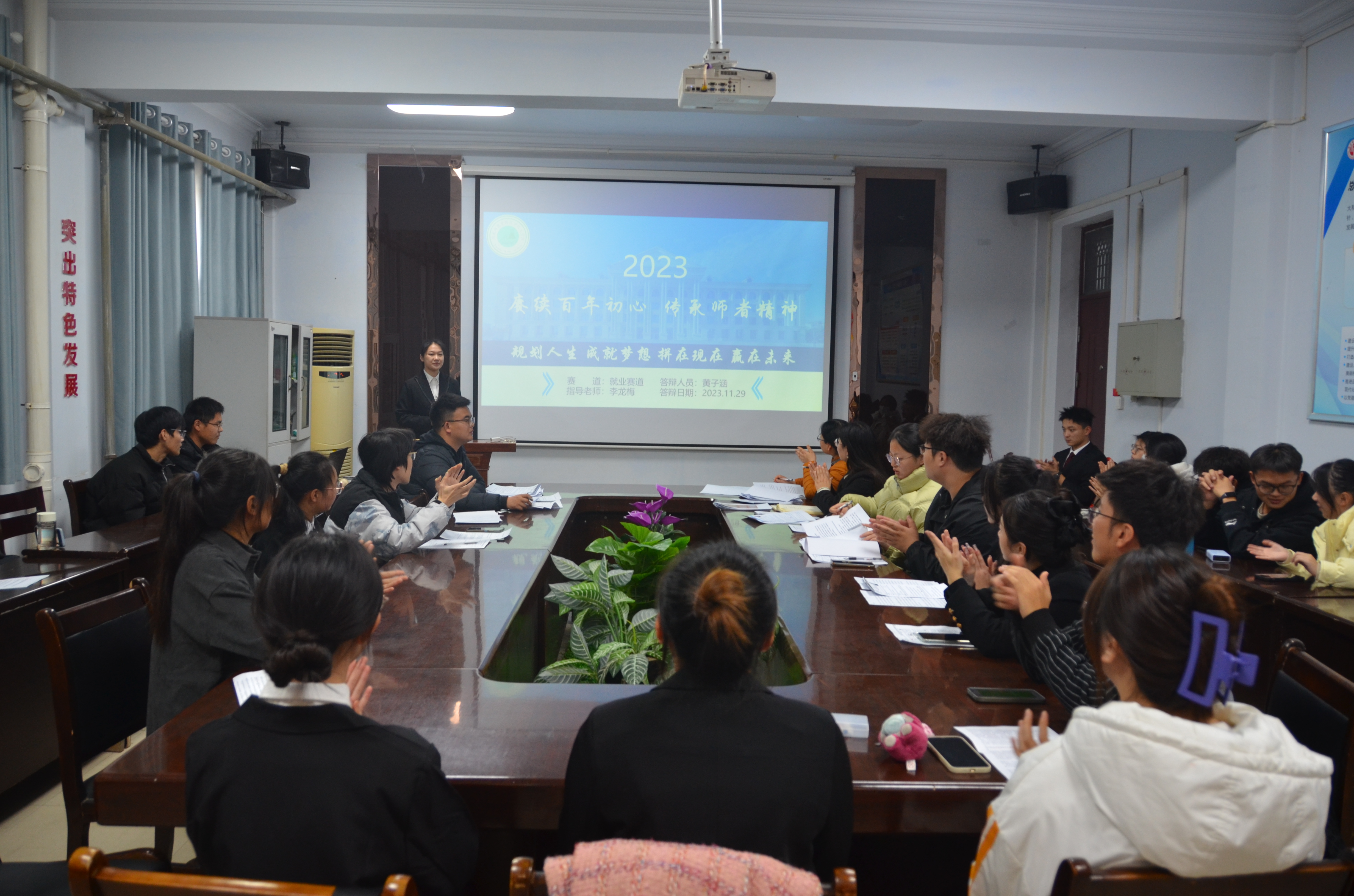 比赛开始前由主持人对参赛流程和参赛规则进行了简要说明。各位选手在赛前精心准备,结合自身成长经历,对自己做了全面的剖析和对未来职业的规划与憧憬,寻找适合自己的职业。比赛中,选手们表现优异,通过ppt展示,汇报了自己的职业规划。最后,张颜梅进行了点评,对选手们的认真备赛、精彩展示给予了充分的肯定,同时也指出了需要改正的地方。