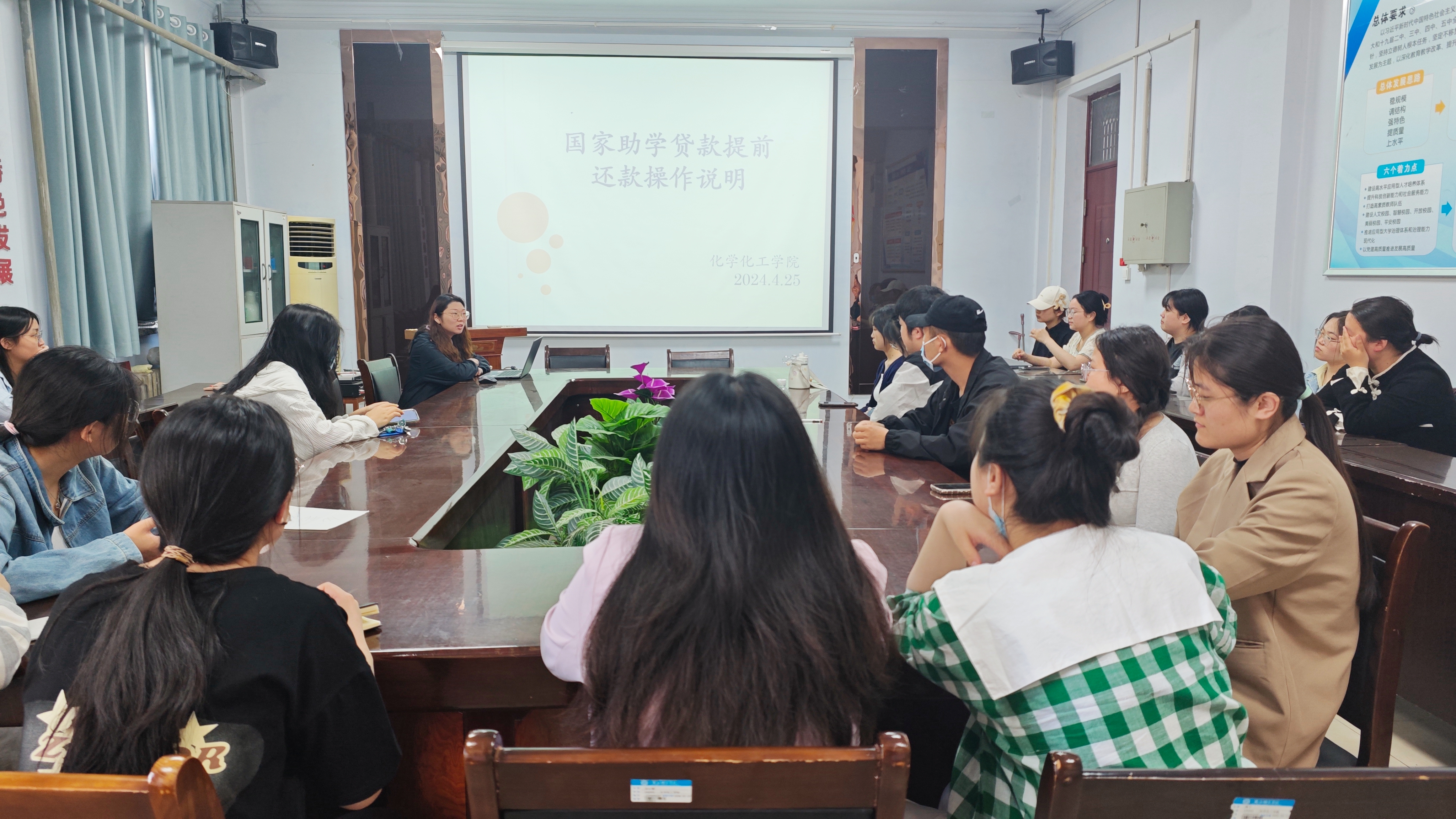 为帮助贷款毕业生了解还款流程,树立诚信还款意识,2024年4月25日,beats365唯一官方网站在学院会议室召开2024届毕业生还款教育会议,确保每位贷款员工了解还款事项及还款流程,会议由学院资助工作负责人王舒欣主持,2024届贷款毕业生参加会议。