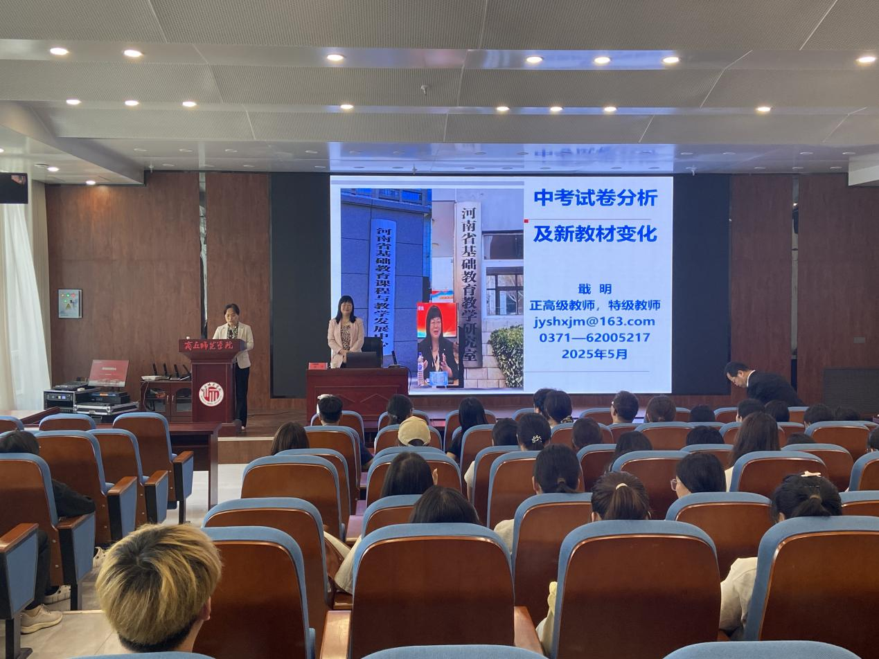 2025年5月23日,学院邀请河南省基础教育课程与教学发展中心化学学科负责人戢明老师在工科实训楼D203会议室作题为《中考试卷分析及新教材变化》的讲座。经理周艳丽、副经理王涛、学院学科教学论老师及全体公费师范生参加此次活动,活动由经理周艳丽主持。