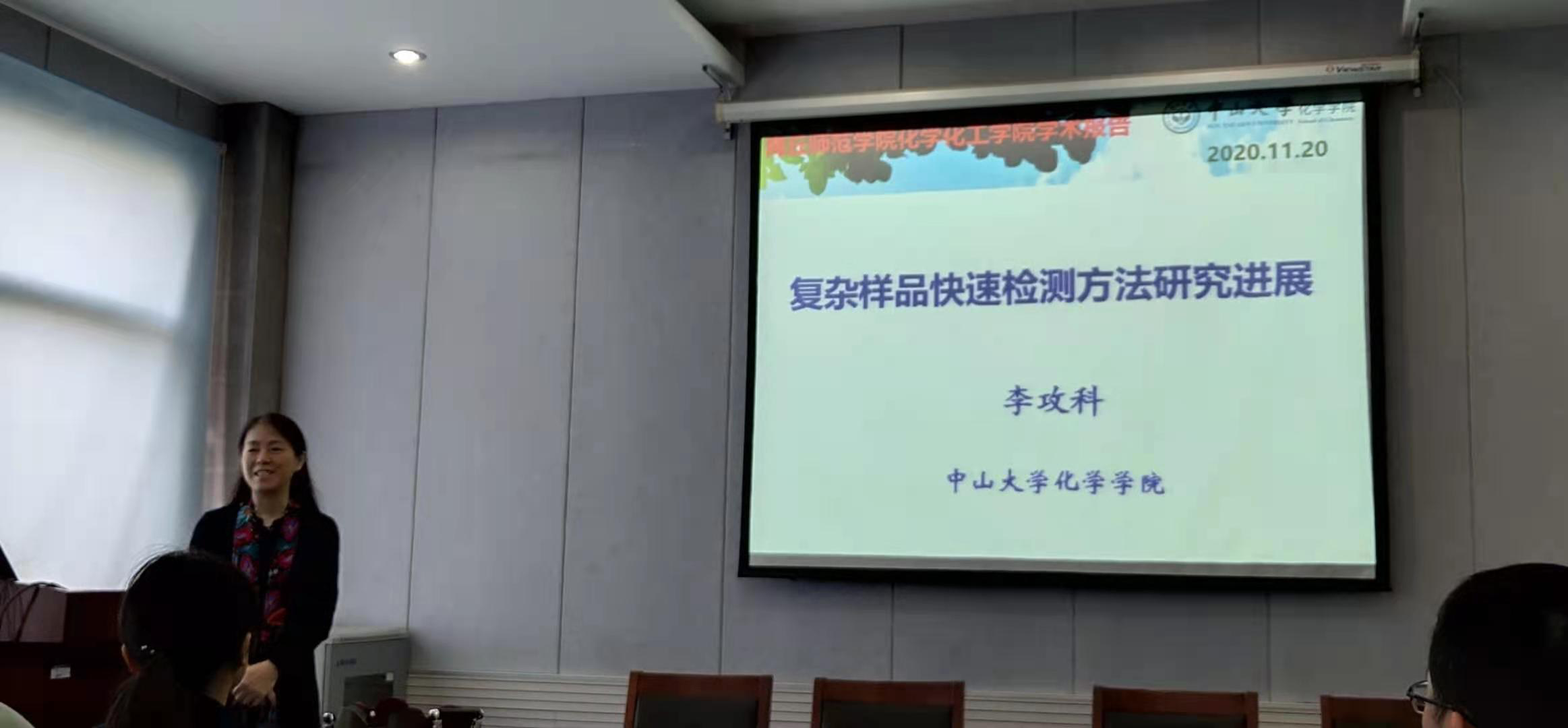 2020年11月20日上午,中山大学化学学院博士生导师李攻科教授应邀来公司文化路校区化学实验楼311会议室做学术报告,报告的题目为《复杂样品快速检测方法研究进展》。beats365唯一官方网站副经理周艳丽教授主持了本次活动,beats365唯一官方网站的部分师生聆听了学术报告。李攻科教授首先介绍了复杂样品快速检测的方法和策略,接着用通俗易懂的语言介绍了课题组在表面增强拉曼光谱和化学发光快速检测方面所做的工作和取得的研究成果,让大家深刻体会到“生活中的科学”无处不在,为公司师生的学术研究提供了新思路、开拓了新视野,对今后的研究工作具有重要指导与启迪意义。讲座结束后,李攻科教授还与现场的老师和同学们进行了互动,对大家提出的问题作了认真解答,现场气氛活跃,井然有序。