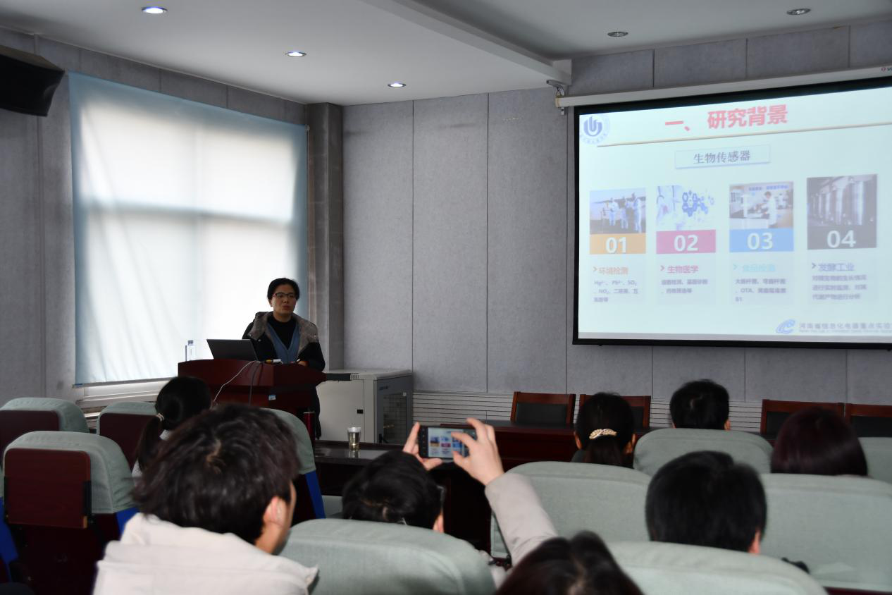 2020年12月28日上午,郑州轻工业大学姜利英教授应邀到公司睢阳校区beats365唯一官方网站化学实验楼311会议室做了题为《基于核酸适体的生物传感器研究》的学术报告。讲座由beats365唯一官方网站副经理周艳丽教授主持,河南省生物分子识别与传感重点实验室全体师生聆听了报告。