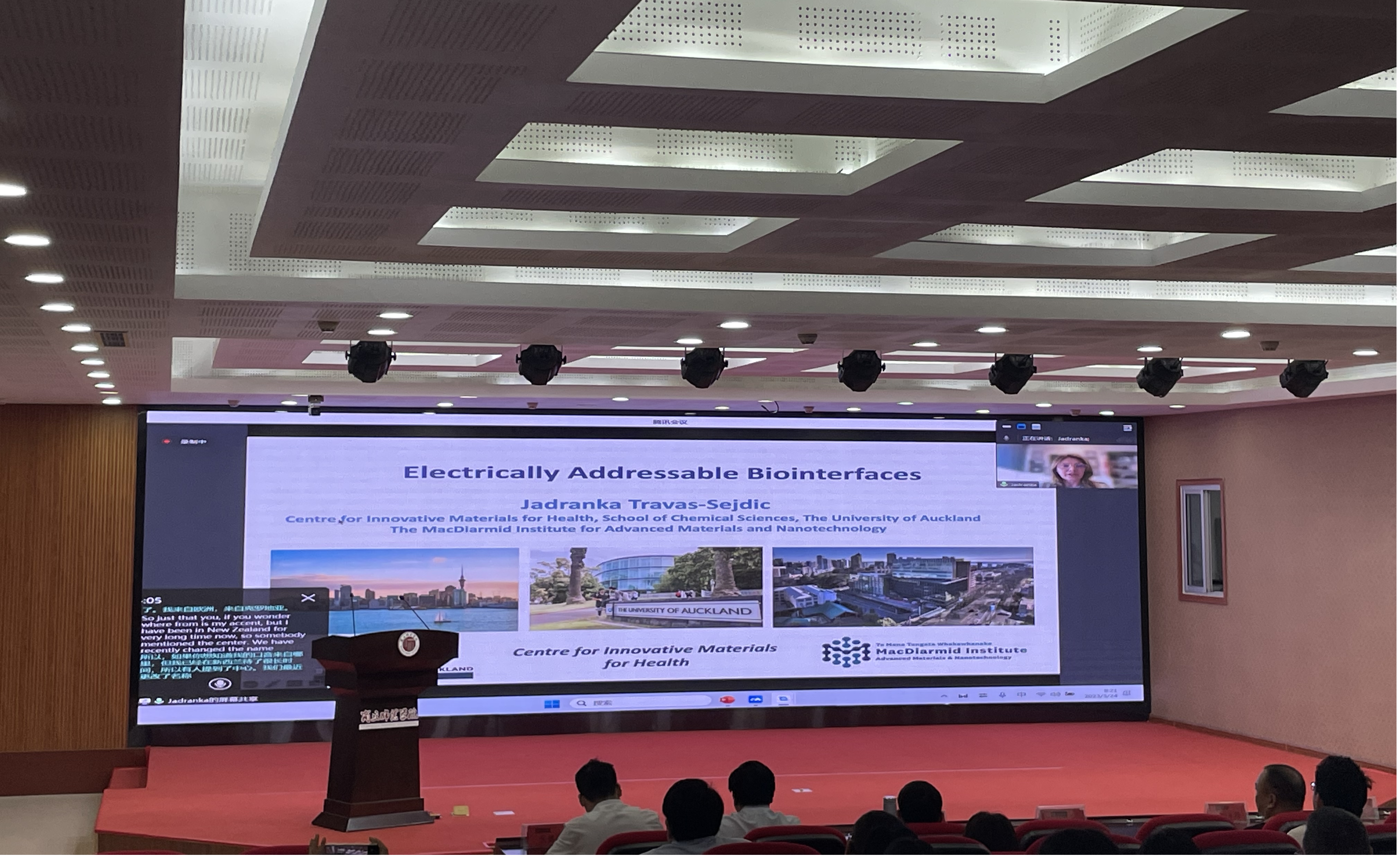新西兰奥克兰大学聚合物生物界面中心主任Jadranka Travas-Sejdic教授做了题为《电化学寻址生物界面》的报告,介绍了课题组在导电聚合物和石墨烯在生物传感和生物电子中的应用,汇报了课题组近年来在仿生导电聚合物设计策略及在癌症标志物、外泌体捕获和释放检测等方面的研究工作。