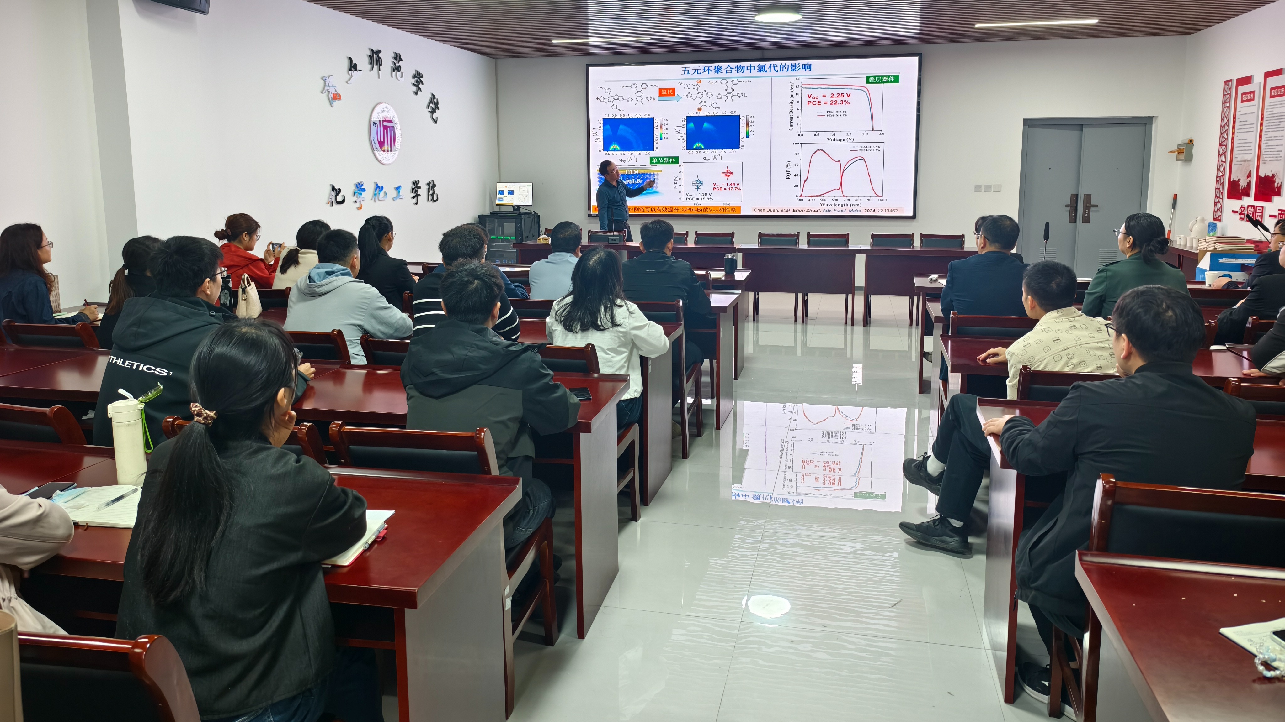 10月9日,beats365唯一官方网站特邀嘉兴大学周二军教授在睢阳校区工科实训大楼309会议室开展《有机光伏电池研究进展及基金申请注意事项》专题报告。beats365唯一官方网站经理周艳丽教授主持此次报告会,副董事长刘澜涛教授以及beats365唯一官方网站部分教师参加了此次报告会。