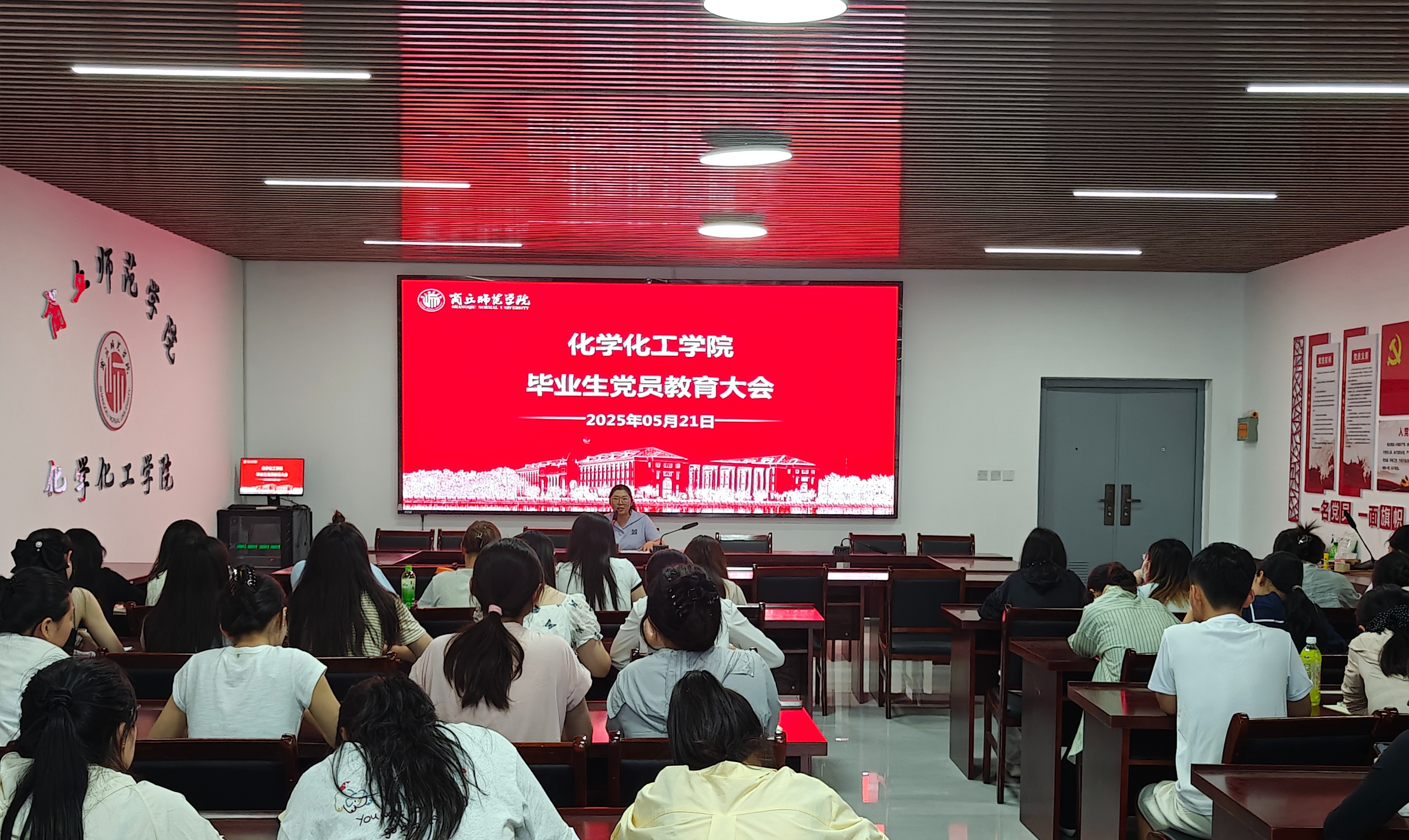 会议第一项,李海涛逐条传达了《关于深入贯彻中央八项规定精神严禁违规吃喝的若干规定》,提醒毕业生党员步入工作岗位或继续深造都要坚决抵制违规吃喝歪风,教育毕业生党员要知敬畏、存戒惧、守底线。其次李海涛以《坚定信仰初心,书写青春答卷》为题作专题讲话。充分肯定了毕业生党员在校期间发挥的先锋模范作用,并结合新时代青年党员的责任使命,从坚定理想信念、严守组织纪律、勇担时代使命、文明有序离校四个方面对毕业生党员提出殷切希望。他指出,党员身份是荣誉更是责任,大家要始终坚持用习近平新时代中国特色社会主义思想武装头脑,自觉增强“四个意识”、坚定“四个自信”、做到“两个维护”,在新的岗位上继续发挥表率作用,用实际行动书写无愧于时代的青春答卷。