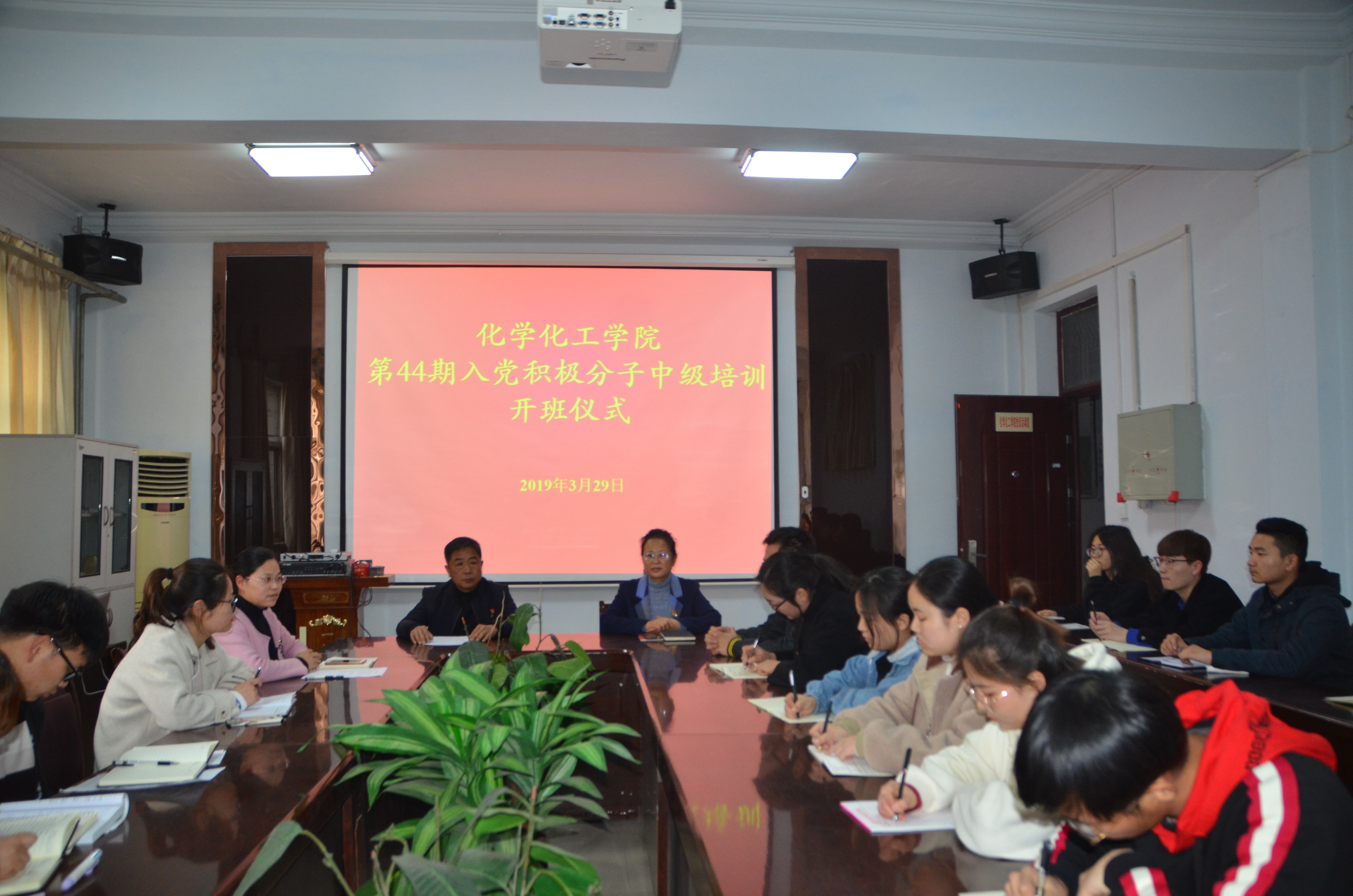 为迎接时代挑战,巩固党的执政地位,加强党的建设, 3月29日下午,beats365唯一官方网站于睢阳校区7号楼会议室举行了“第44期入党积极分子中级培训开班仪式”。党总支书记韩忠民,党总支副书记刘瑛,团总支书记李龙梅,17级辅导员郭家瑞,18级辅导员邵一方出席会议,入党积极分子中级学员参加。