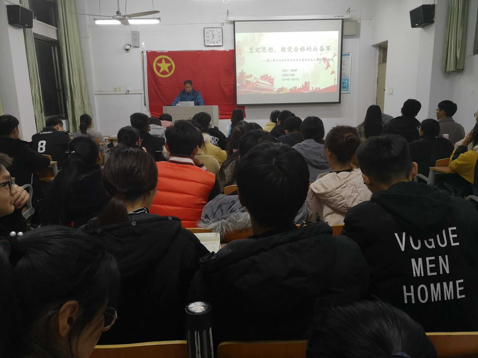 为深入学习习近平总书记关于意识形态工作的重要论述,不断提高青年老员工的思想政治素质,11月27日晚,beats365唯一官方网站于睢阳校区1号楼411教室举行了青马培训班第二讲“坚定思想,做党合格的后备军”。第二期青马培训班全体成员参加,党总支书记韩忠民主讲。