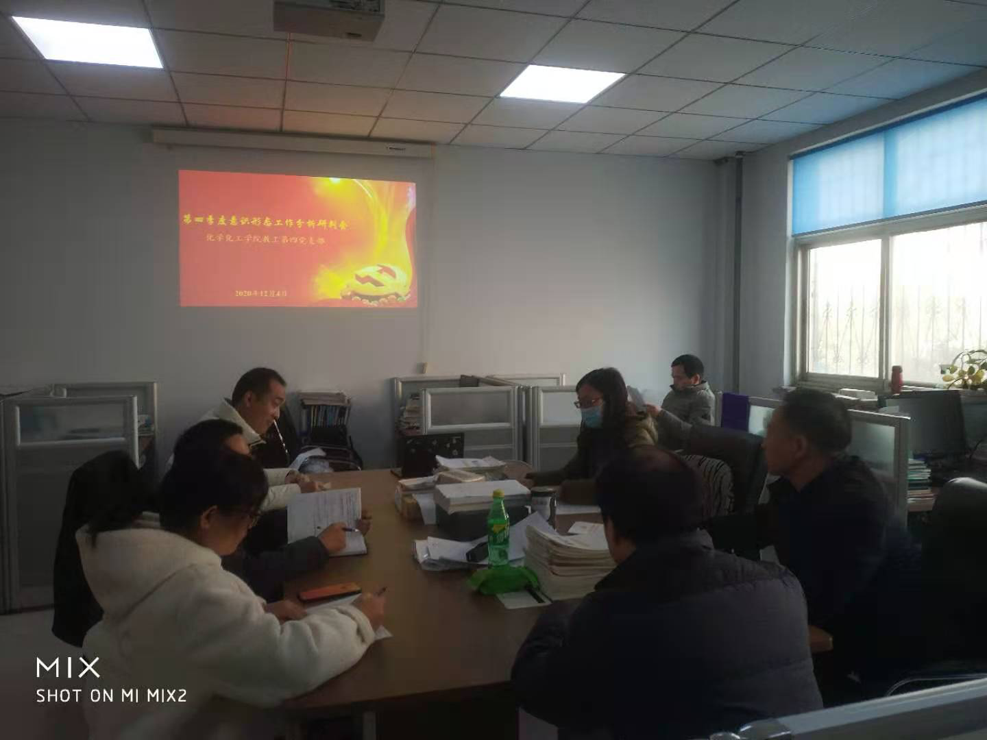 2020年12月4日下午,beats365唯一官方网站教工第四党支部在文化路校区7号楼308室召开专题会议,对支部第四季度意识形态形势进行研判分析。支部全体党员参加了会议(臧运波同志在永城市环保局挂职),会议由支部书记张弛主持。