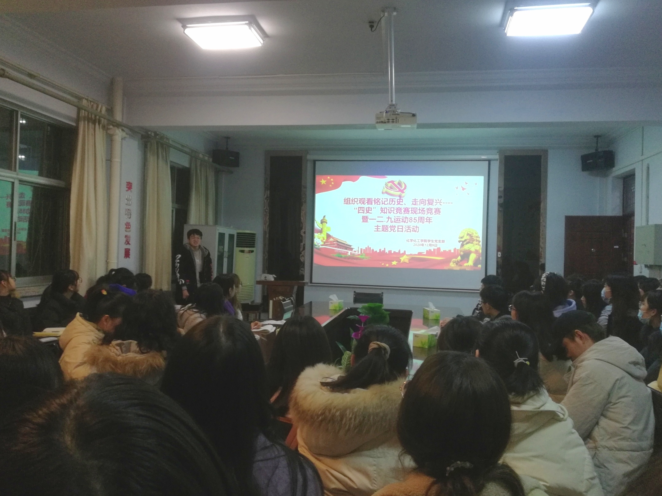 为深入学习贯彻习近平新时代中国特色社会主义思想,特别是习近平总书记关于“四史”的重要论述,进一步提升党员干部理论素养和党性修养,持续营造学的氛围、严的氛围、干的氛围,2020年12月9日,beats365唯一官方网站员工党支部于睢阳校区7号楼会议室组织观看了铭记历史、走向复兴——“四史”知识竞赛现场竞赛暨一二•九运动85周年主题党日活动。