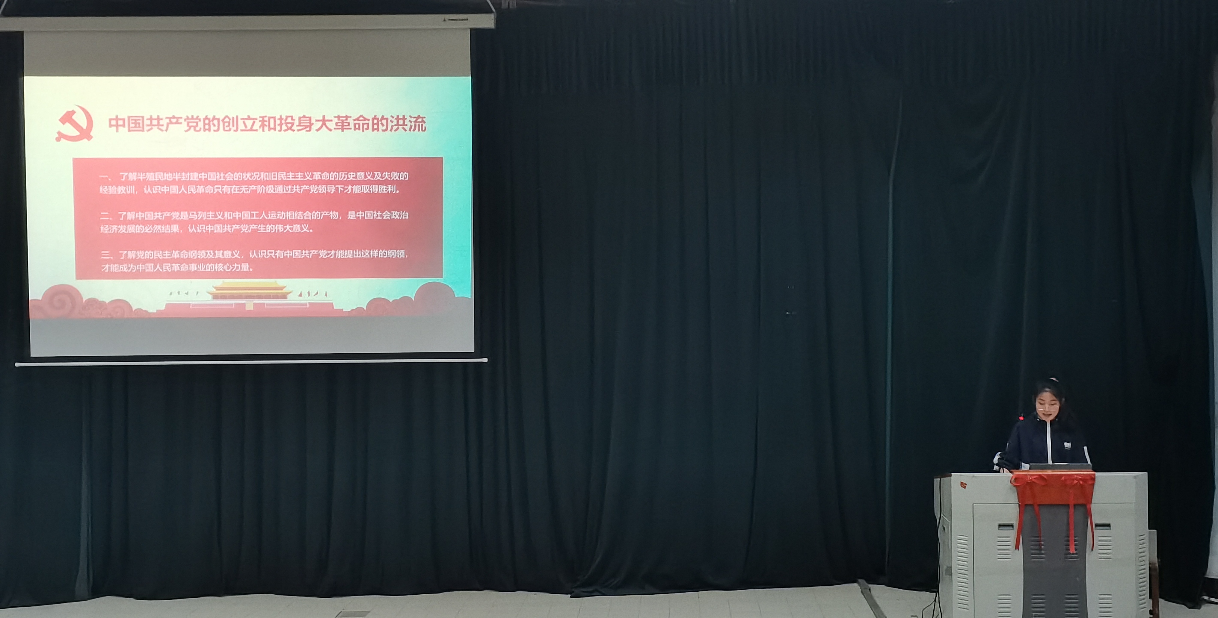 会议中,谷梦娇围绕“学党史,知党情,跟党走”主题展开讲述,从近代中华民族的历史任务、五四运动和马克思主义的传播以及中国共产党的成立和民主革命纲领的制定三个部分讲述了中国共产党成立百年以来的重要历程和沧桑巨变。