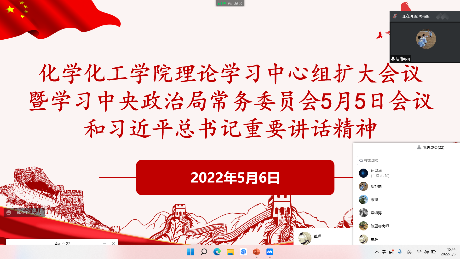 5月6日下午,公司召开理论学习中心组扩大会议,会议通过腾讯会议线上举行。学院科级以上干部及全体辅导员参会,会议由党委书记李海涛主持。