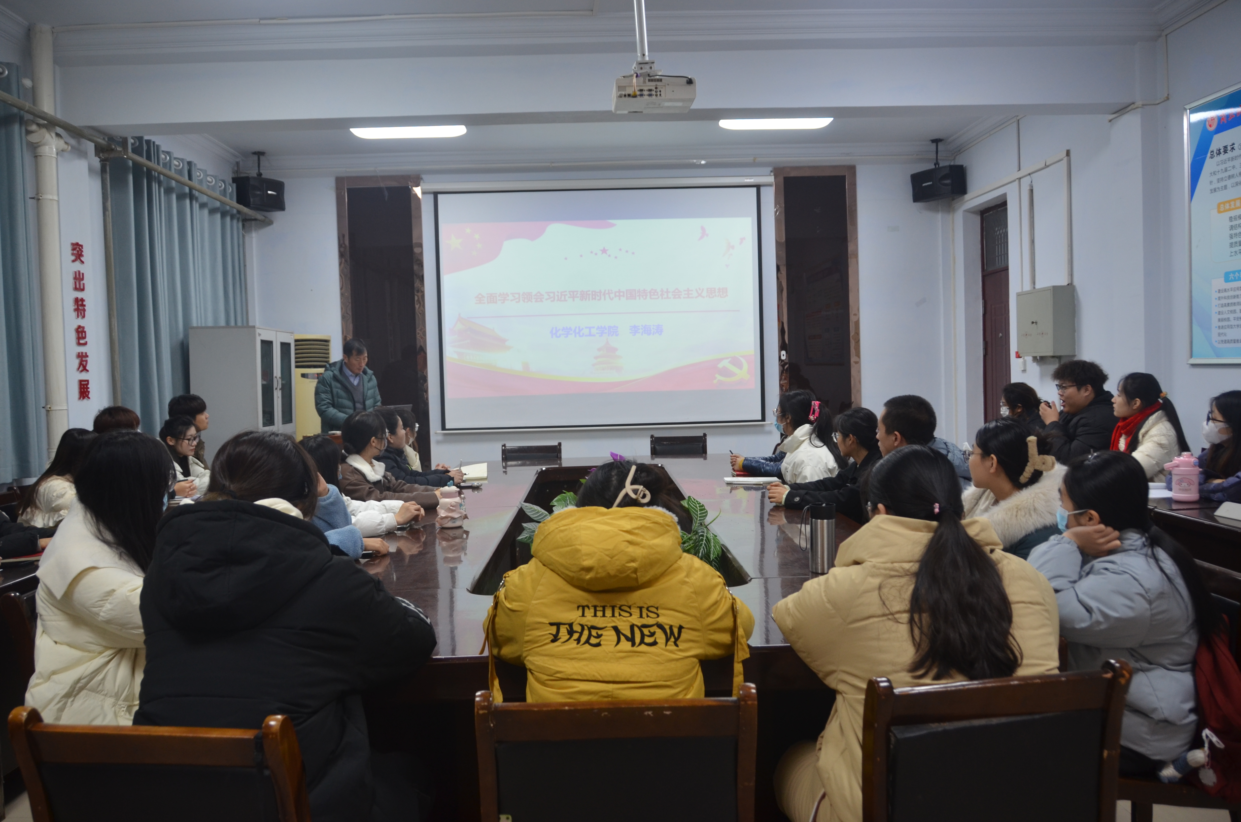 李海涛围绕“系统掌握习近平新时代中国特色社会主义思想的主要内容”和“自觉运用习近平新时代中国特色社会主义思想指导各项工作”这两方面开展此次专题培训,主要从“十个明确”“十四个坚持”“十三个方面成就”这三个方面详细讲解,并提出预备党员在今后的学习和工作中要进一步坚定理想信念、艰苦奋斗,传承党的光荣传统和优良作风,践行和发扬党的精神,努力提高服务能力和水平。