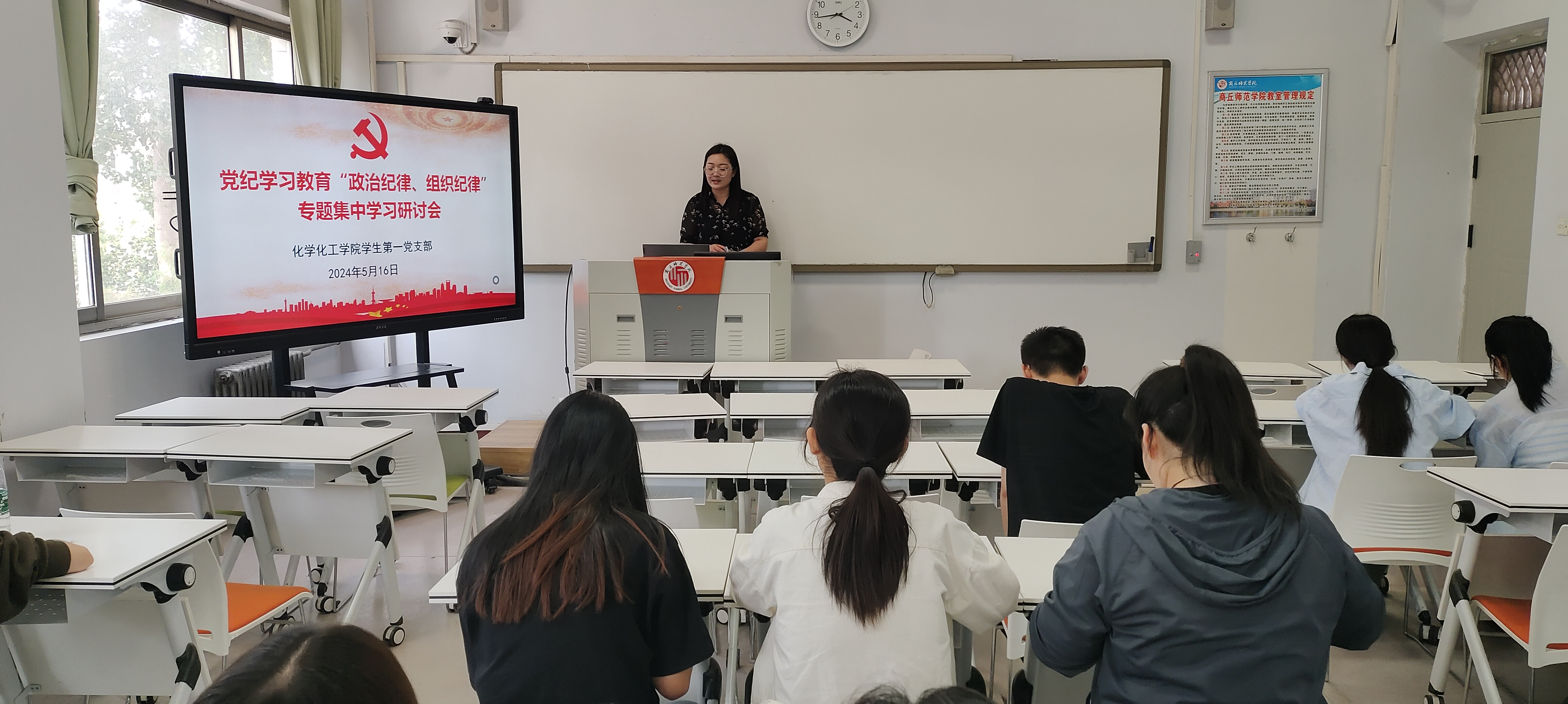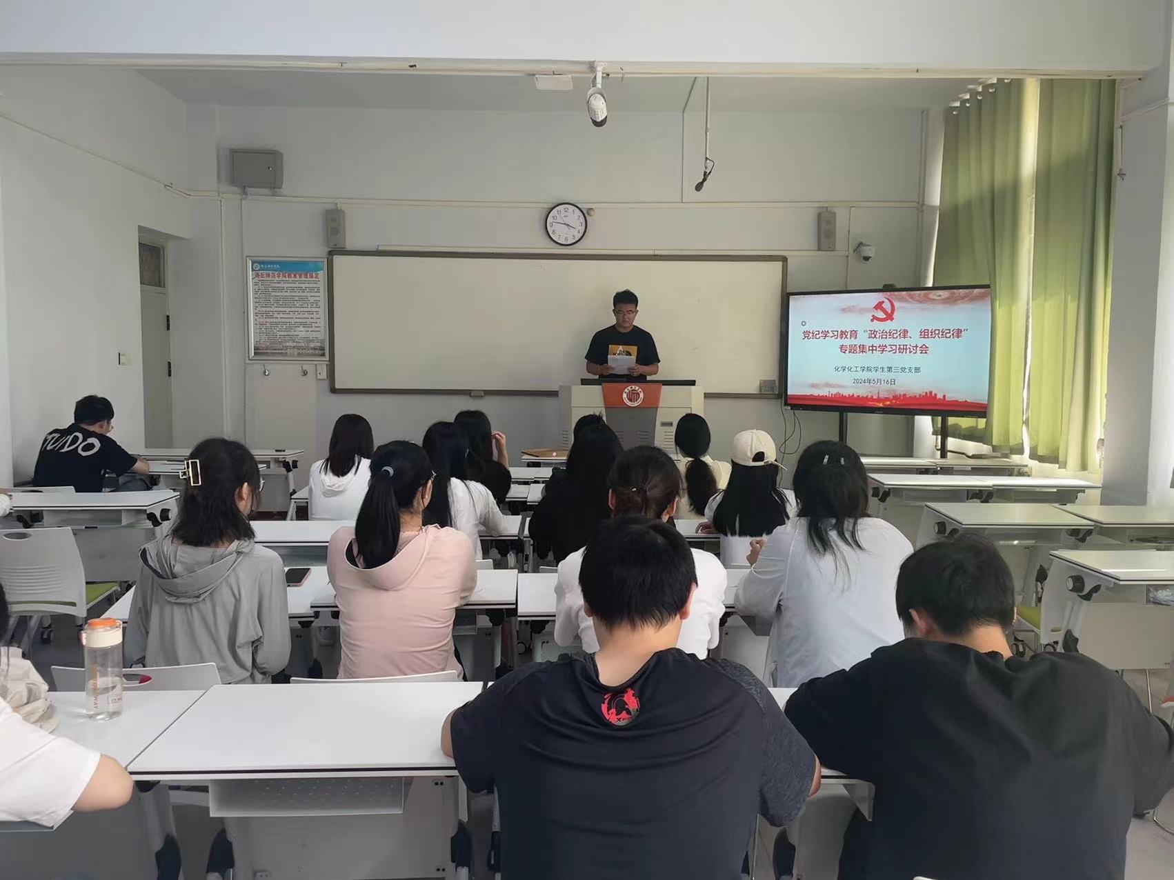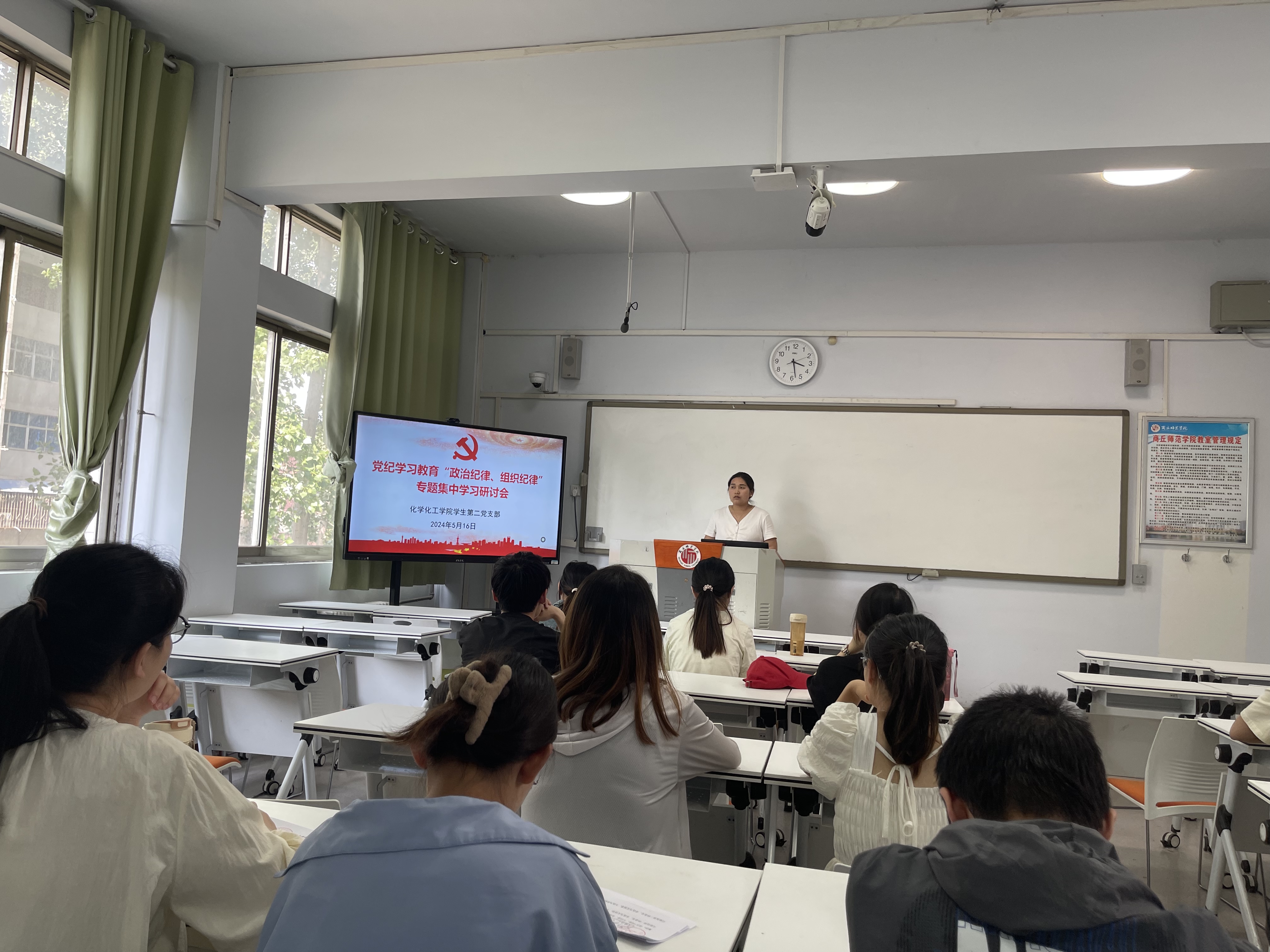 5月20日,教师第一支部书记董辉以《讲党性,守党规,严党纪》为题,结合新修订的《中国共产党纪律处分条例》进行讲解。5月31日,教师第二支部书记胡新成进行党课教育,并带领支部成员对《中国共产党纪律处分条例》集中研讨学习,公司党委书记李海涛同志以普通党员身份参加支部学习研讨;教师第三支部联系领导王涛副经理深入支部进行《以党纪为标尺,从严从实检身正己》党课活动,并围绕《条例》进行“学纪律,强党性”知识竞赛主题党日活动;教师第四党支部进行“学《条例》,守党纪,强党性”主题党日活动,并进行集中研讨学习,公司党委副书记张颜梅参加并给与指导。