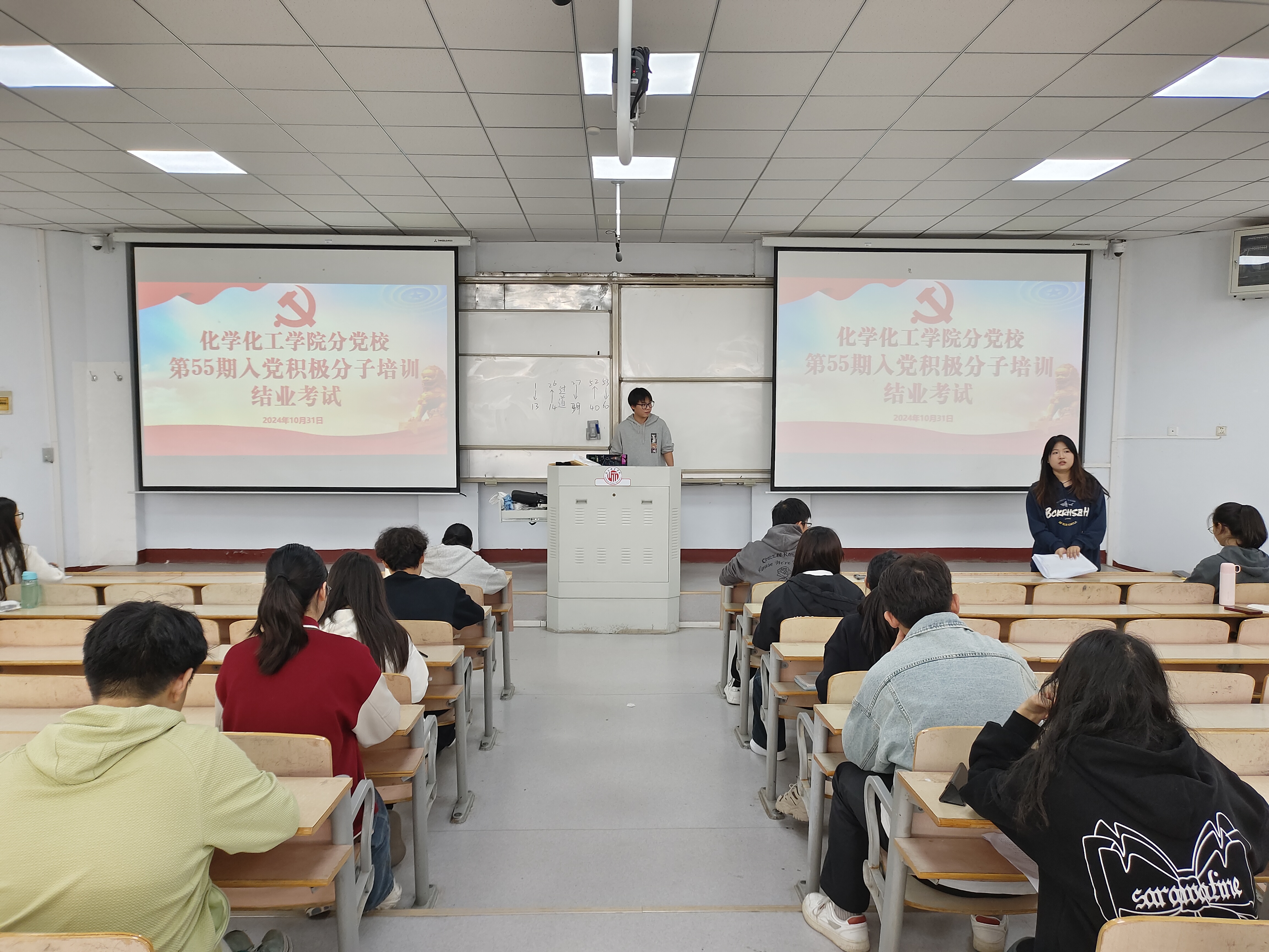 10月31日,第55期中级入党积极分子培训班组织全体学员在1号教学楼106进行了培训结业考试。全体参训人员参加。