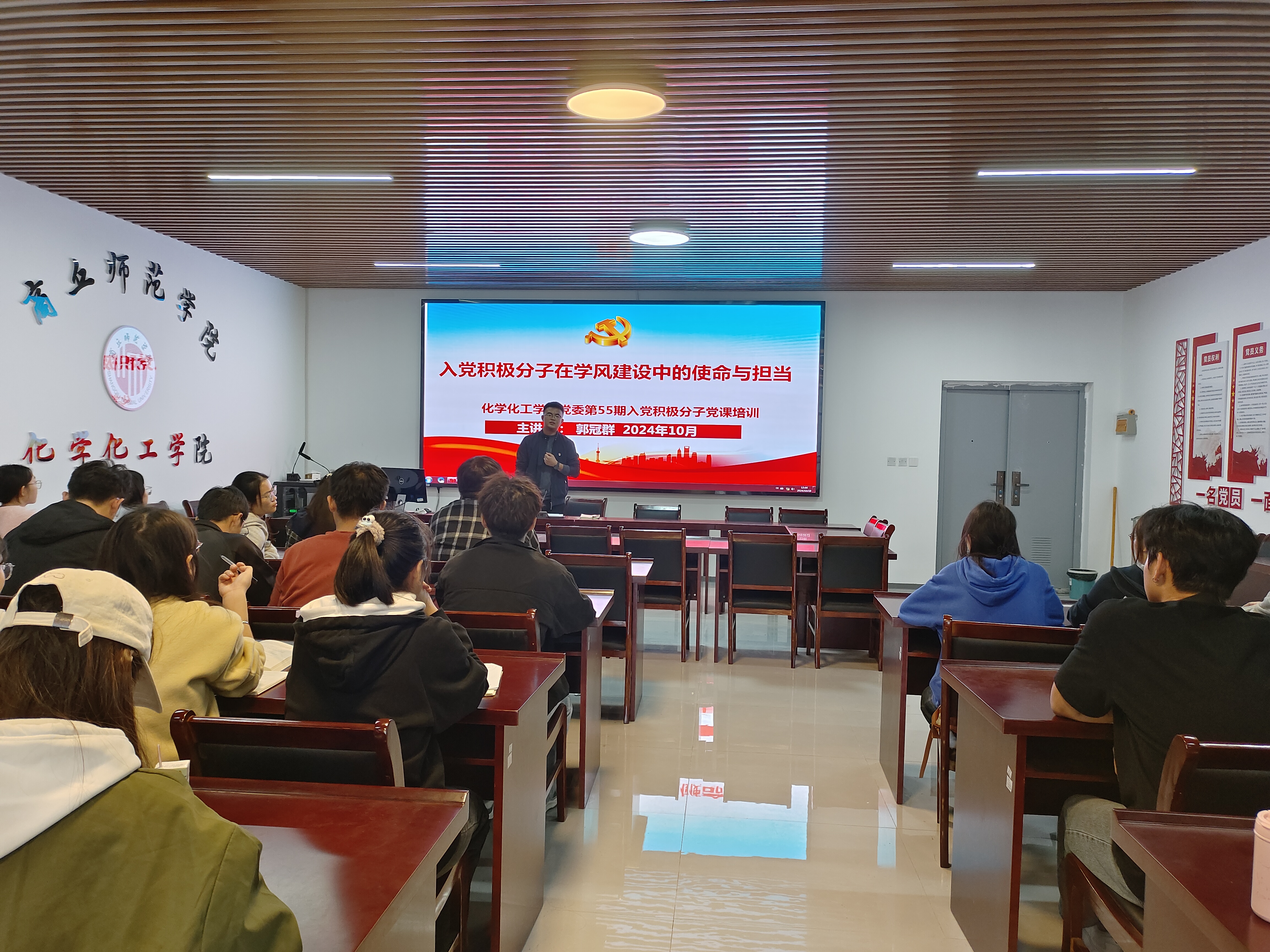 10月28日中午,第55期中级入党积极分子培训班第二次专题授课在工科实训大楼B309会议室进行,学工办副主任郭冠群以《入党积极分子在学风建设中的使命与担当》为主题作专题培训,全体中级积极分子参加。