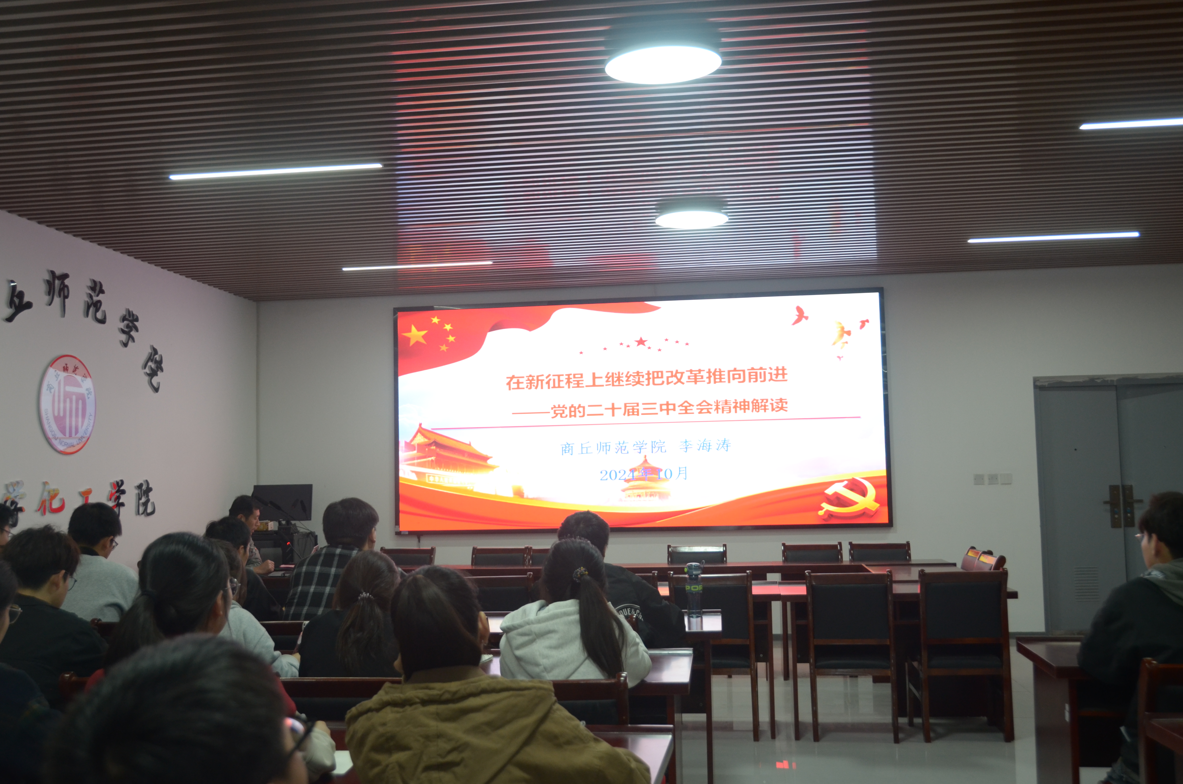 10月25日下午,第55期中级入党积极分子培训班第一次专题授课在工科实训大楼B309会议室开展,李海涛以《在新征程上继续把改革推向前进》为主题进行授课,带领大家学习了党的二十届三中全会精神。通过此次授课,大家对党的二十届三中全会精神有了更深刻的了解。