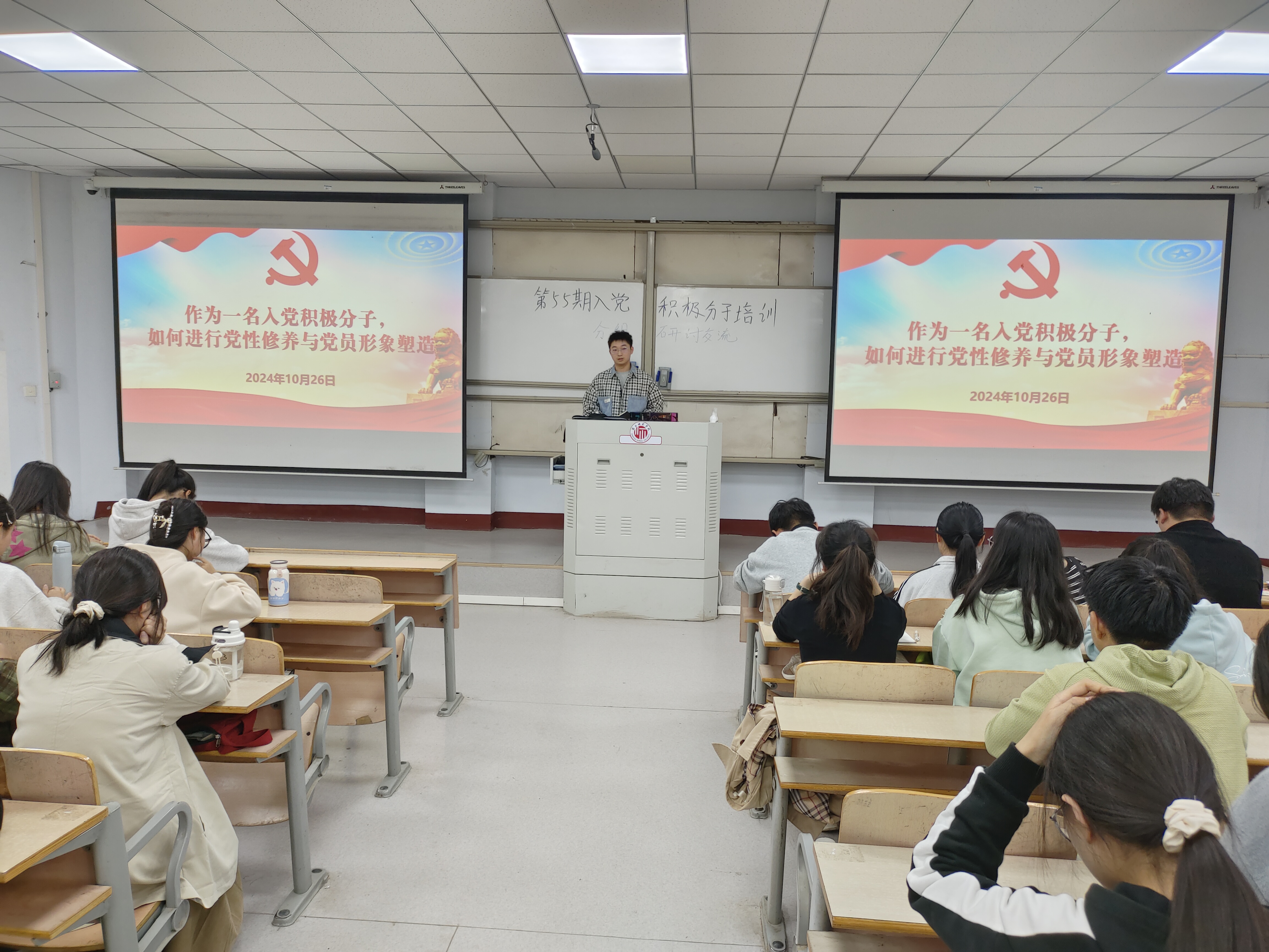 10月26日下午,第55期中级入党积极分子培训班第二次专题授课在1号教学楼307教室进行,学院团委书记郭家瑞以《坚定理想信念 筑牢入党初心--党员发展工作程序解读》为题作专题培训,全体中级积极分子参加。