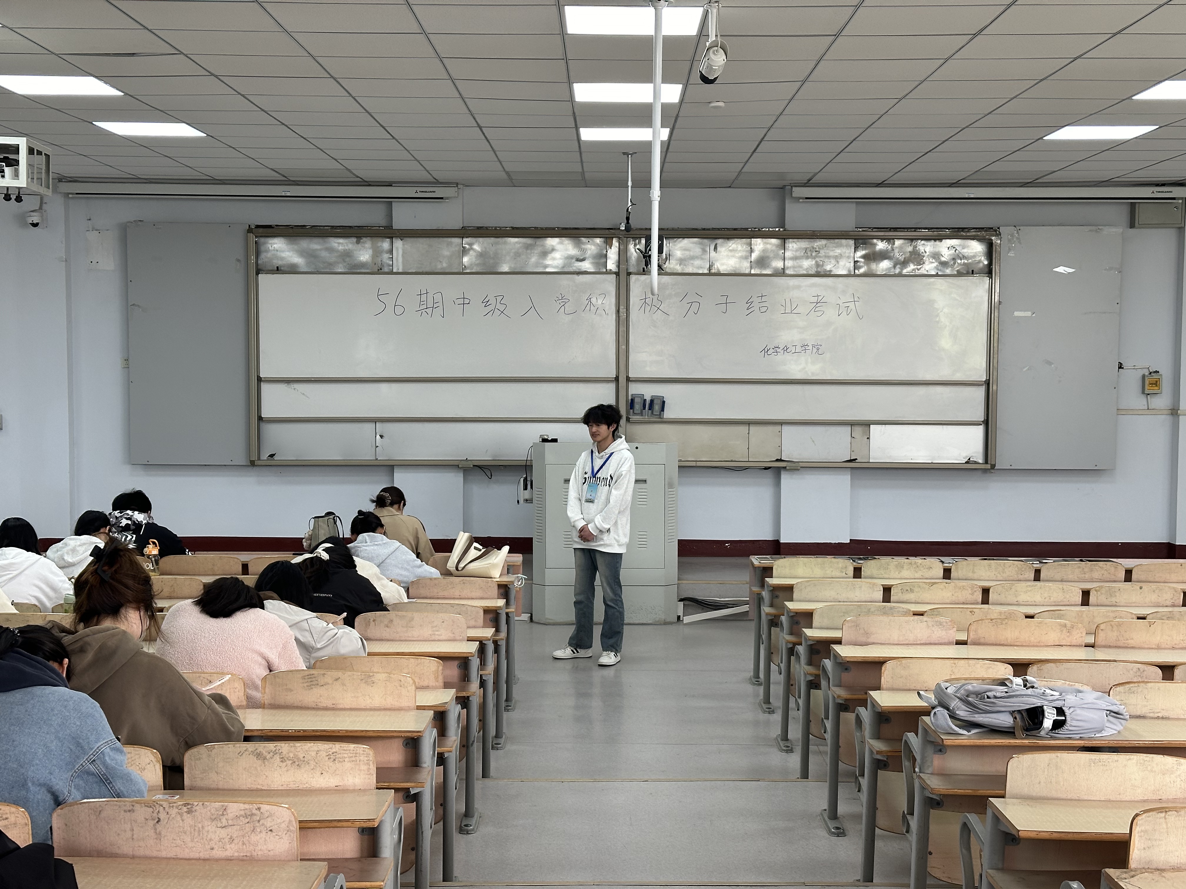 4月13日,第56期中级入党积极分子培训班组织全体学员在1号教学楼207进行了培训结业考试。全体参训人员参加。
