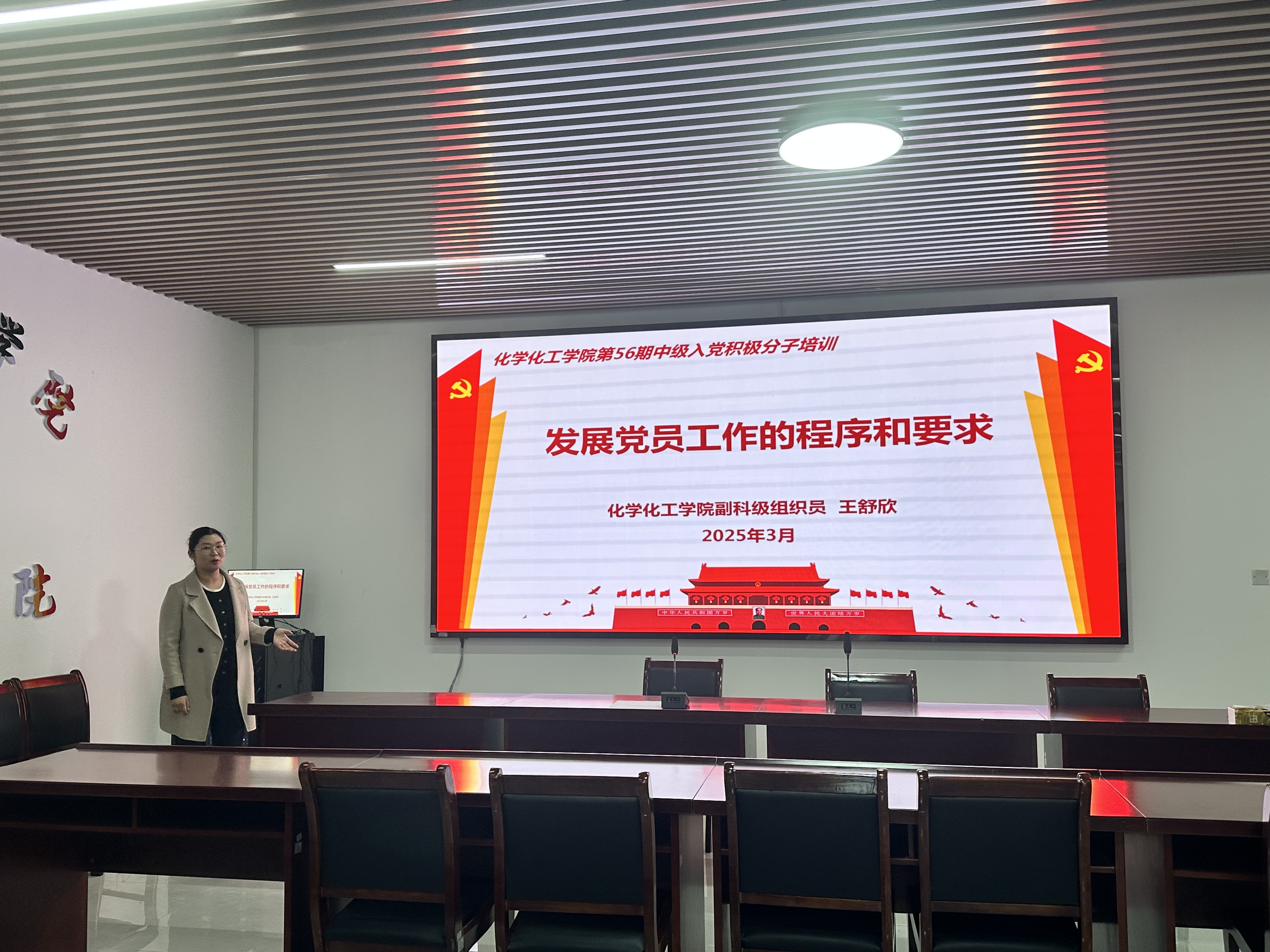 3月31日,第56期中级入党积极分子培训班第一次专题授课在工科实训大楼B309会议室进行,王舒欣以发展党员工作程序和要求为专题进行授课。带领大家围绕入党流程、培养考察、材料填写等方面进行了详细讲解,帮助学员们明确发展党员的标准和程序,进一步增强对党组织的认识。