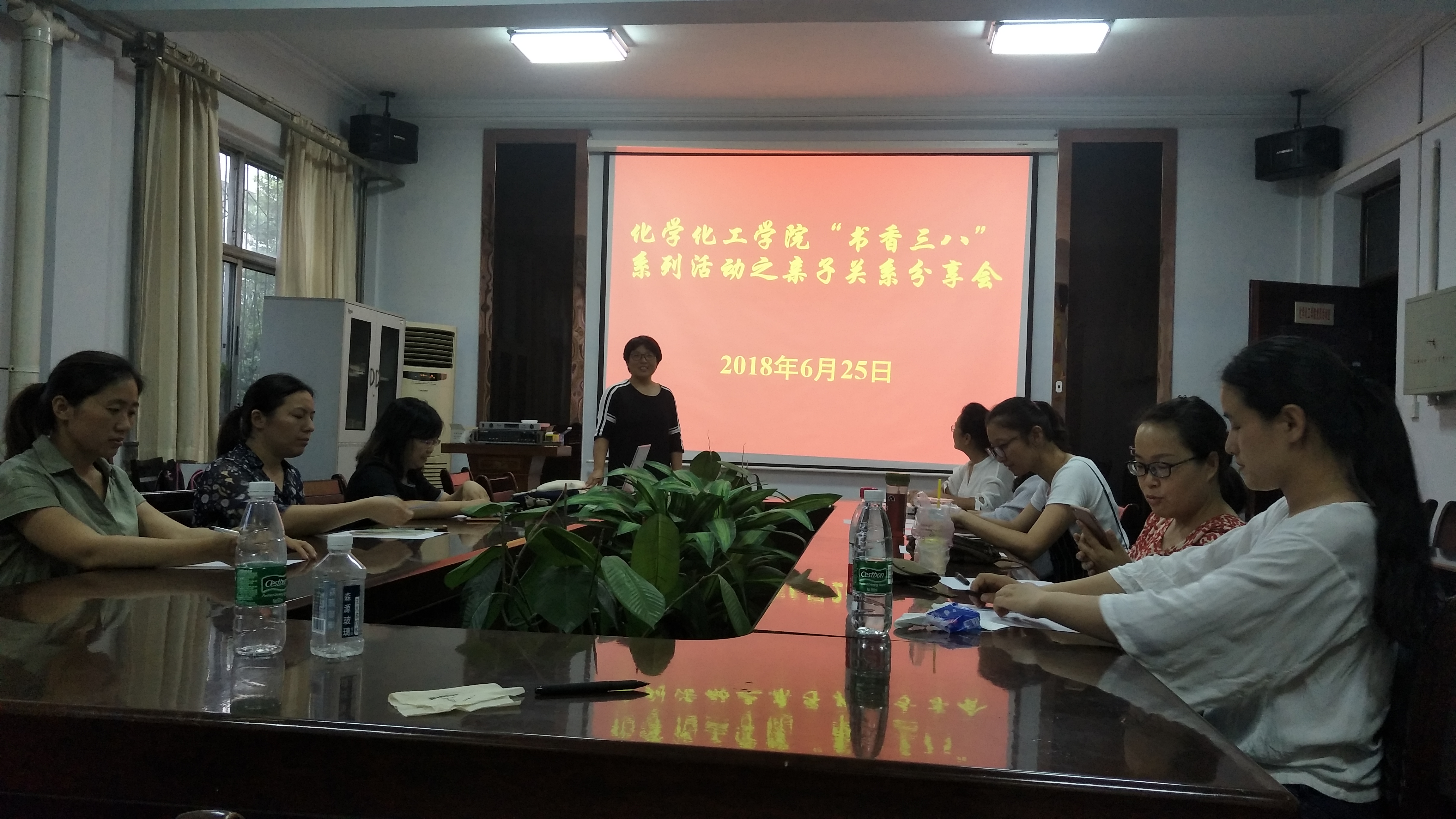 为深入学习贯彻党的十九大精神,积极响应校工会第一届“书香三八”读书活动,6月25日晚上七点,beats365唯一官方网站在睢阳校区7号楼一楼会议室举行了“书香三八”系列活动之“亲子关系”分享会,院全体女教师参加了会议,会议由公司党总支副书记刘瑛主持。