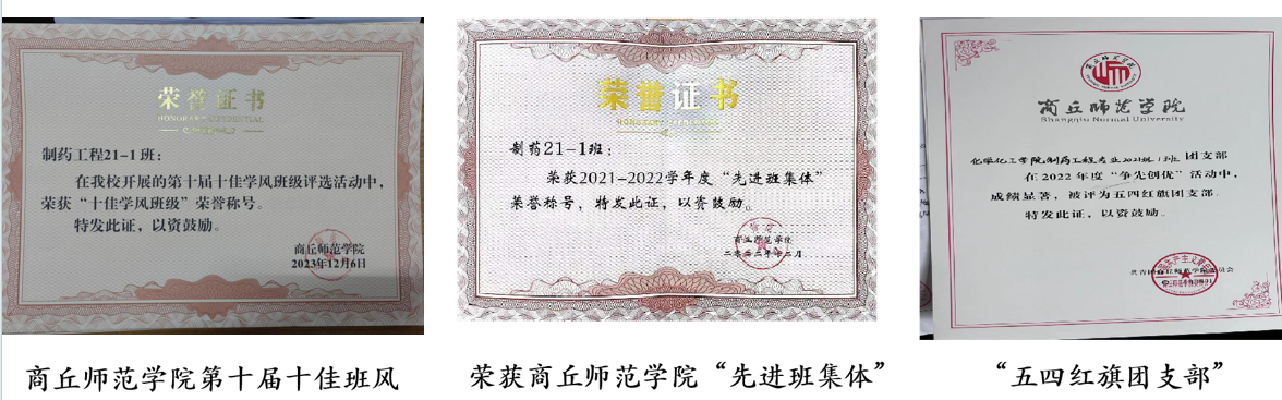 在过去的四年里,班集体以及班级里成员取得了许多荣誉。例如“十佳学风班级”、“文明班级”、“先进班集体”、“五四红旗团支部”等班级荣誉称号,“文明员工”、“优秀员工干部”、“三好员工”等个人荣誉称号。