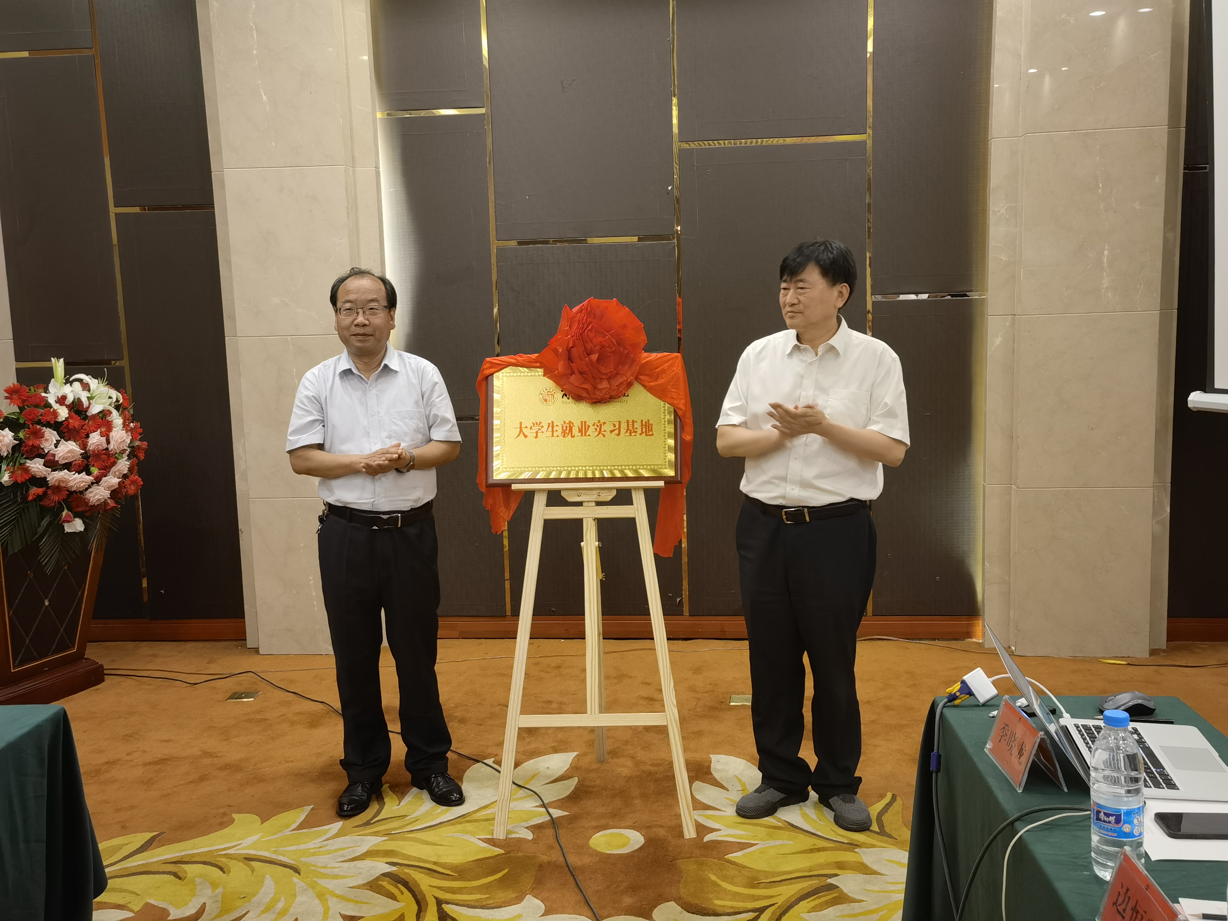 随后,郭文佳和边俊杰签订毕业生就业实习实践基地协议,郭文佳和任广瑜共同为BEAT365英国官网网站老员工就业实习基地揭牌。