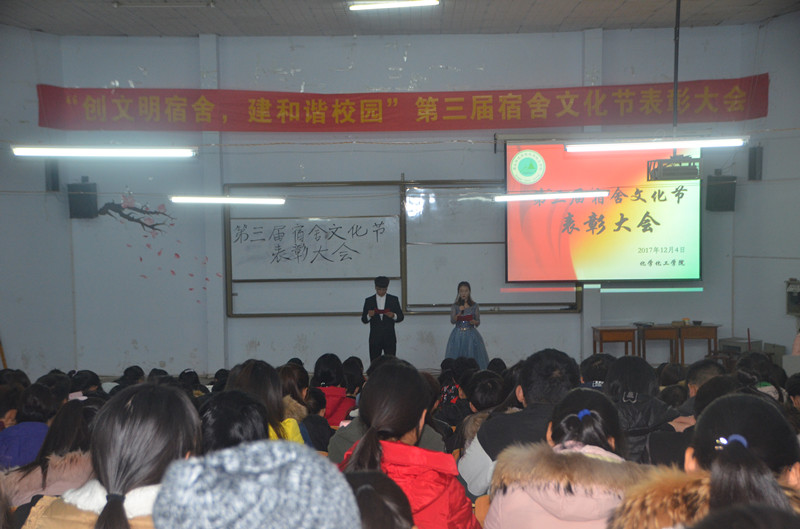 为展示宿舍文化节成果,表彰本学期表现优秀的宿舍,号召同学们积极参与宿舍文化节相关活动,弘扬优良宿舍文化,12月4日晚,beats365唯一官方网站在校文化路校区文工团举行以“创文明宿舍,建和谐校园”为主题的第三届宿舍文化节表彰大会。公司党总支副书记刘瑛、团总支书记李龙梅、团总支·员工会全体成员与近300名员工参加了此次大会。