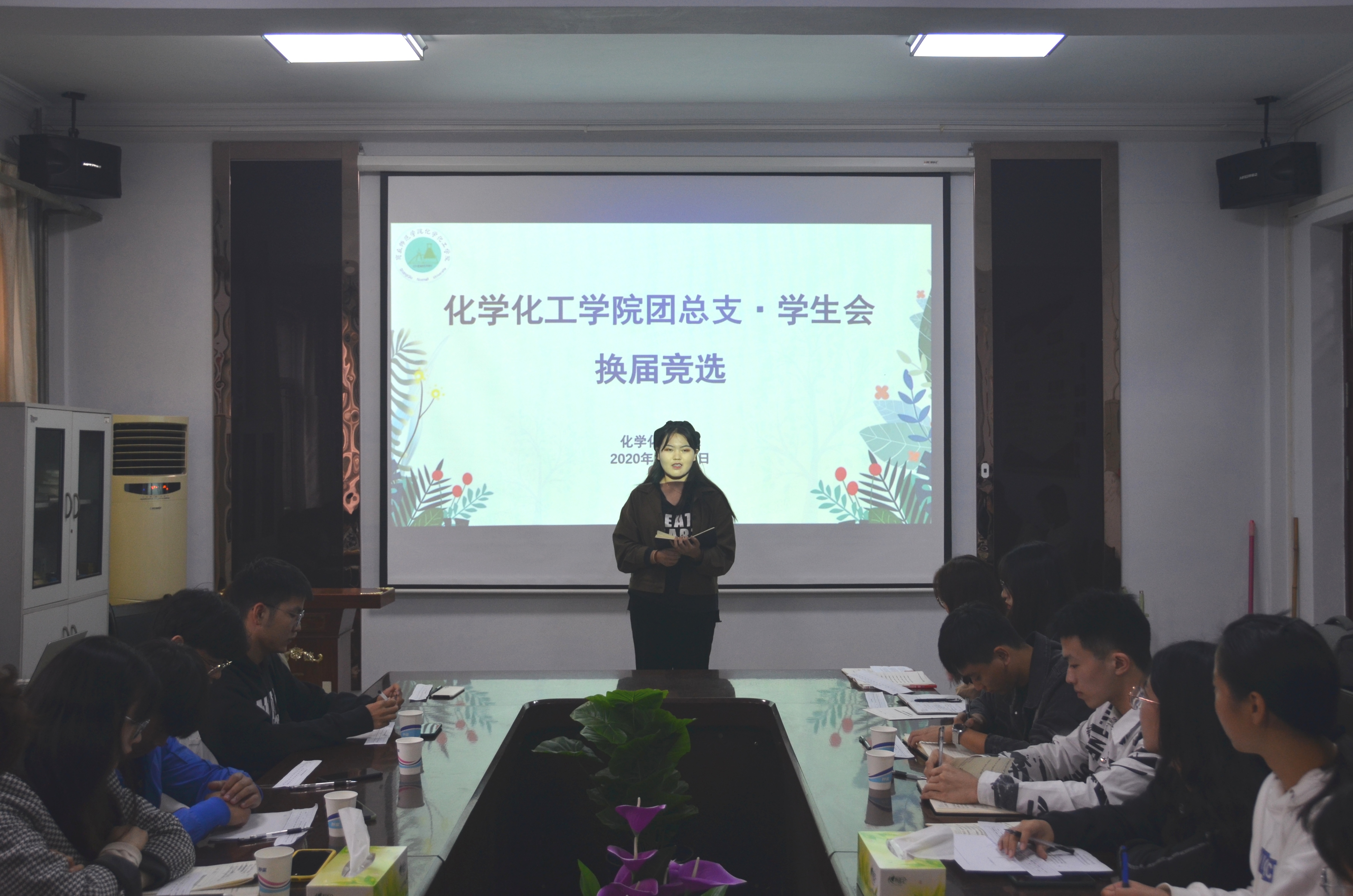 会上,魏世民就员工会改革相关事项进行了解释和说明,包括员工会校级与院级改革人数、职称改变、新增志愿者部并将其与社团部、新媒体中心一同划为团总支、“学代会”由三年一届改为一年一届等几方面具体的改革方案。接着,开始换届竞选演讲,各位竞选者做了自我介绍后分别讲述他们对竞选职位的认知、对未来的工作规划、对员工会未来发展的规划等。