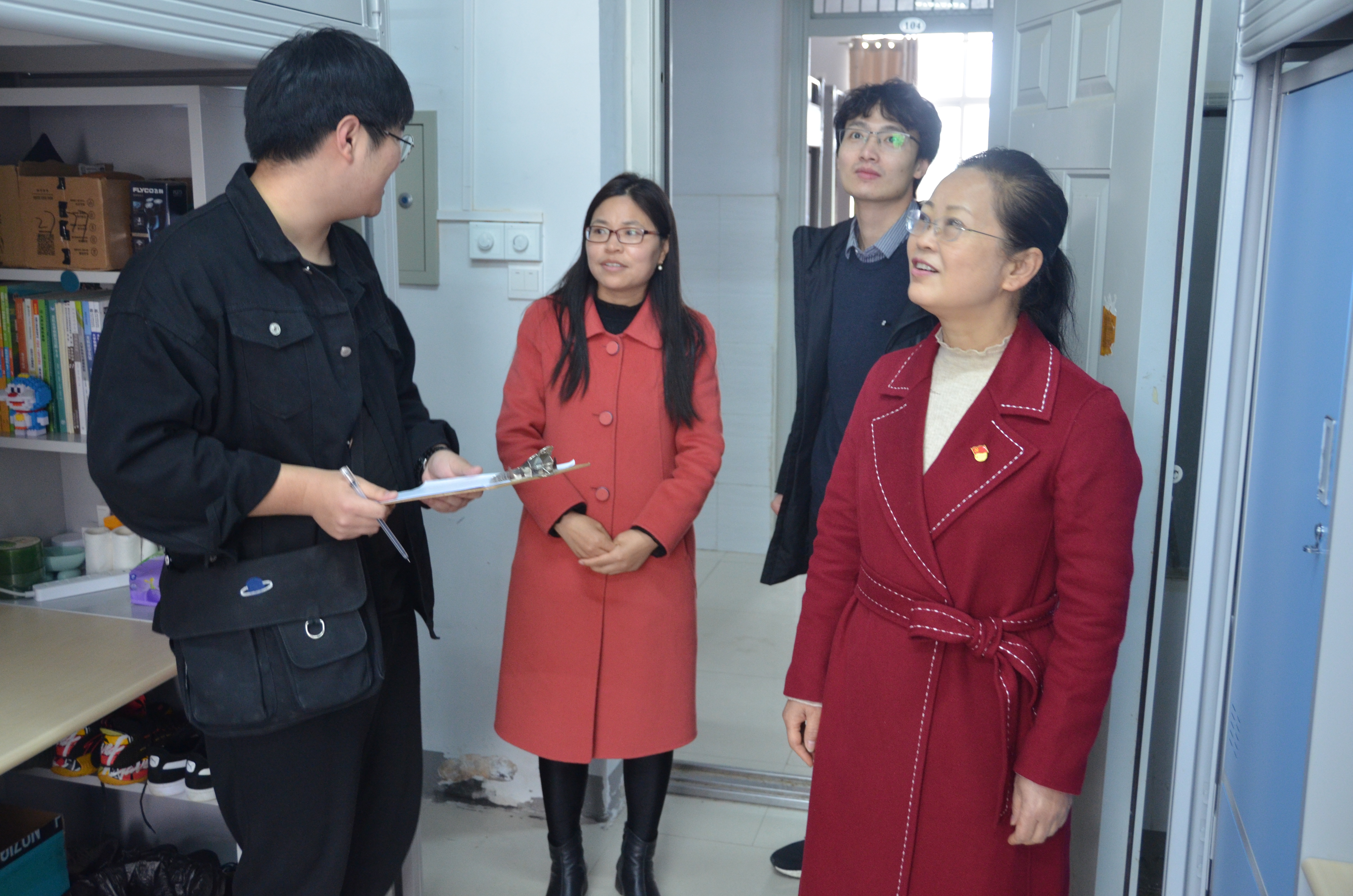 走访过程中,老师们详细询问员工日常生活情况,记录下员工遇到的难题,并对宿舍卫生、用电安全进行了检查。刘瑛提醒同学们一定要遵守宿舍管理规定,不使用违章电器,按时就寝,保持宿舍干净整洁,舍友之间相互理解包容、相互帮助,共同营造一个和谐、友爱、温馨的宿舍环境。刘瑛还提醒同学们,由于疫情防控形势需要,目前公司还处于封闭管理状态,希望同学们能继续坚持“非必要不外出”的原则,积极配合学校做好疫情防控工作,安排自己的好学习生活。此外刘瑛也对同学们的理解与配合表示感谢。