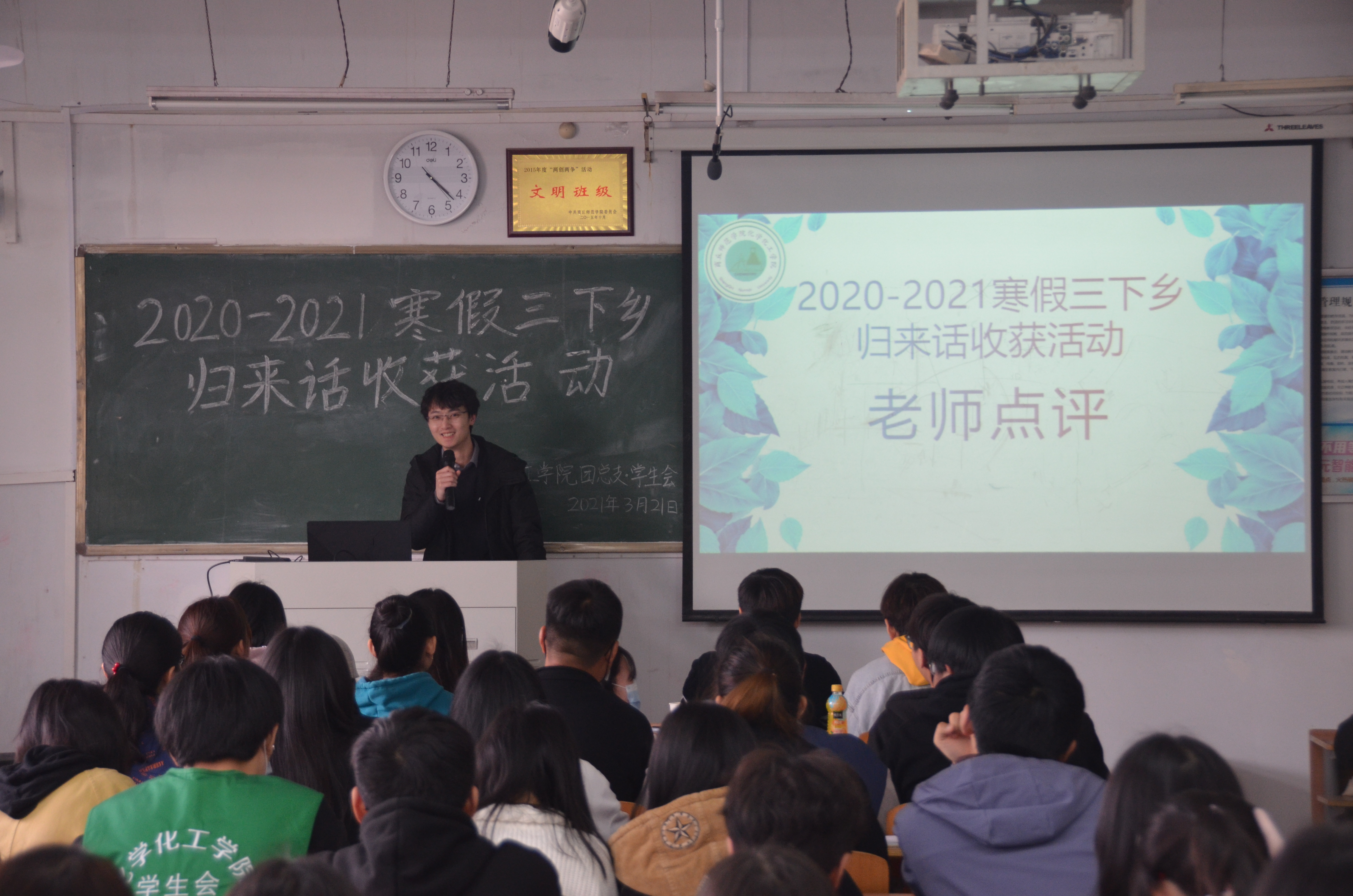 为引导青年学子扎根中国大地了解国情民情,通过社会实践坚定理想信念、站稳人民立场、投身强国伟业。2021年3月21日,beats365唯一官方网站于睢阳校区1号楼408室开展以“青春聚力‘十四五’,乘风破浪展风采”为主题的2021年寒假“三下乡“实践归来话收获活动。beats365唯一官方网站员工工作办公室副主任史展出席,大一大二员工参加了活动。