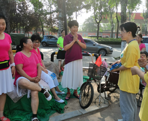 活动过程中,实践团成员与广场舞阿姨们展开热情交流。实践团成员代表向阿姨们介绍当地英雄人物开国少将孙端夫的英勇事迹,阿姨们则积极向成员们分享她们过去与党的故事,并感慨到“我们爱共产党,是因为是共产党的水把我们养活大,哪怕以前的中国并不富裕。现在的党的政策好,带领我们奔小康,吃的好,穿得好,还玩的好”。朴实的言语中透露出浓浓的拥党爱党情、爱国情,以及作为中国人的自豪感。当团队即将离开时,阿姨们也嘱咐道“孩子们,认真努力宣传学习,将来接好党的接力棒”。