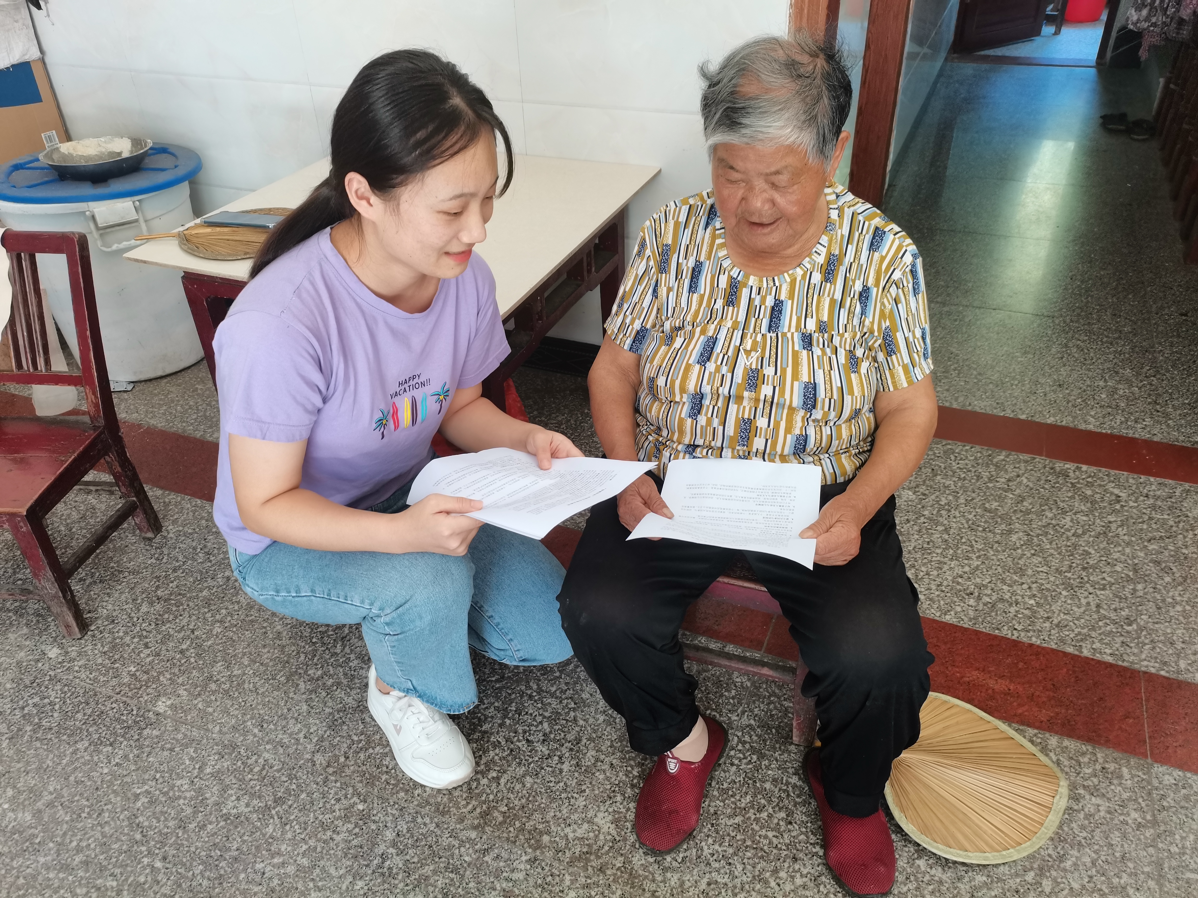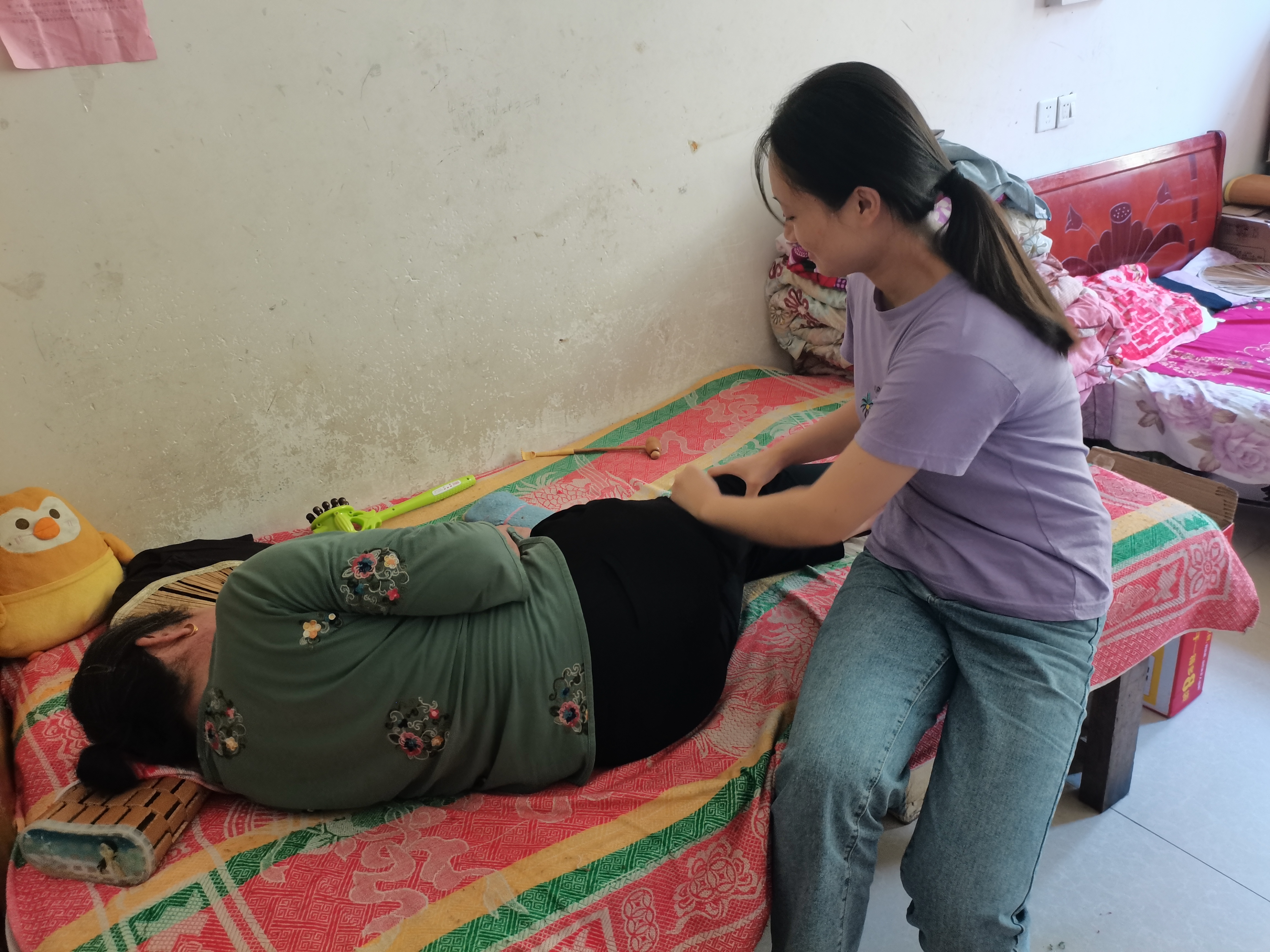 随后,赵玉洁又到几位空巢老人家中,帮他们打扫卫生,和他们聊一些生活中的琐事,并将自己整理的有关生活安全的注意事项念给他们听,希望他们能注意生命安全。此外,她还为一位身患类风湿性关节炎,常年跛脚行动不便的老人捶腿按摩,希望能为她缓解一些疼痛,同时和这位老人聊天解闷,排解子女不在家的苦闷。