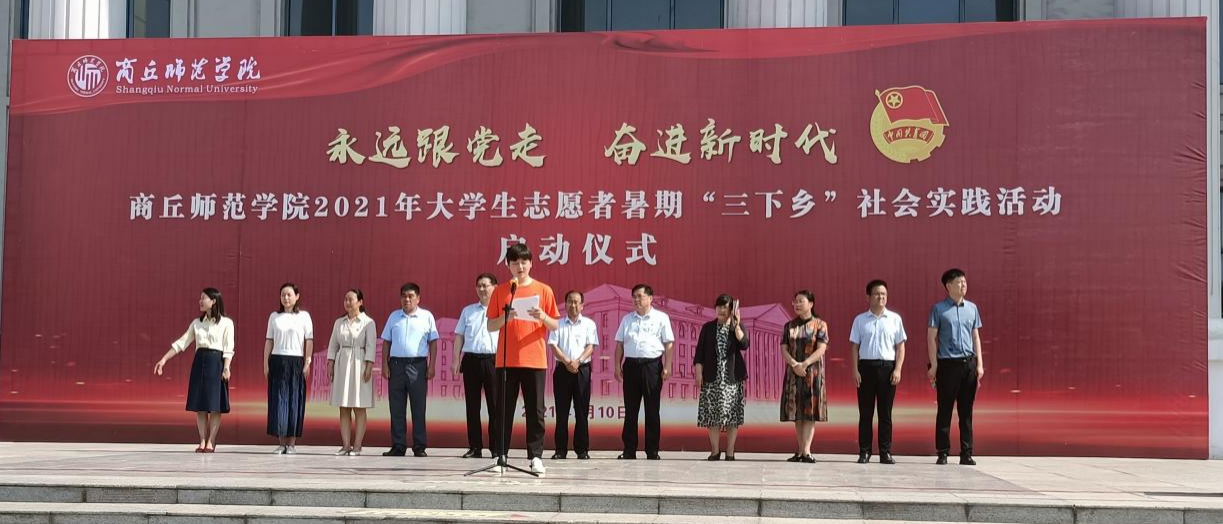 7月11日上午,30余名志愿者在郭家瑞老师的带领下,参加了校团委在梁园校区汉梁楼前南广场举行的BEAT365英国官网网站2021年暑期“三下乡”社会实践启动仪式。