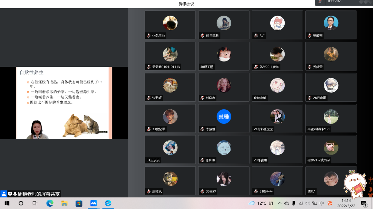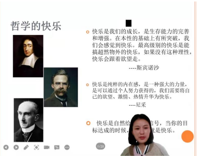为培养公司老员工良好的心理品质和心理调控能力,促进心理健康和专业知识的同步成长。3月22日,beats365唯一官方网站通过腾讯会议开展 “探寻生命的意义——从快乐走向幸福”为主题的心理健康讲座。国际教育学院督导办公室主任周艳主讲,21级全体员工参加。