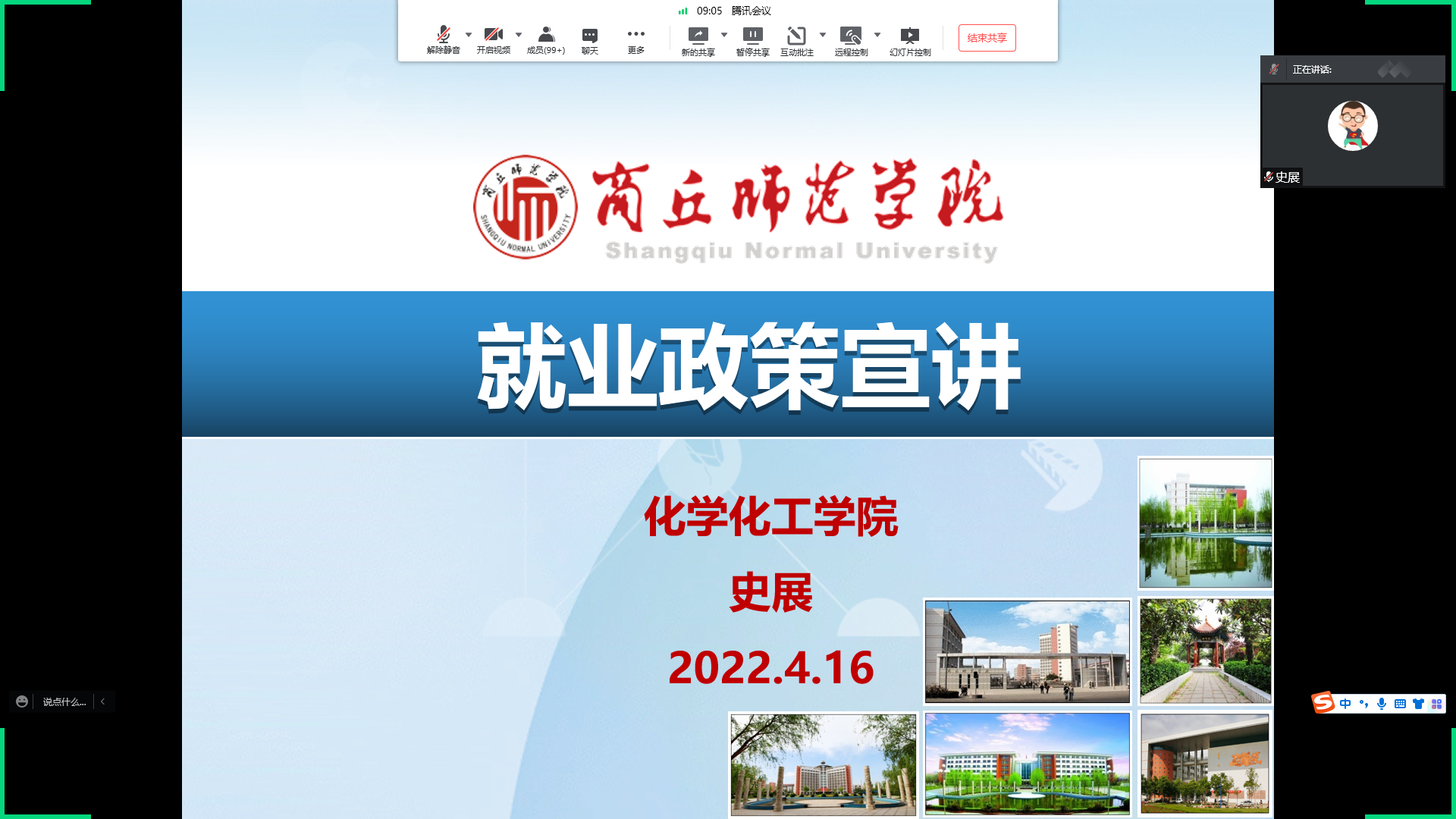 为加强公司员工对当前就业政策的了解,明确就业目标,提高就业竞争力,公司于4月16日利用腾讯会议召开了就业政策宣讲会,毕业班辅导员史展主讲,2018级全体员工参加。
