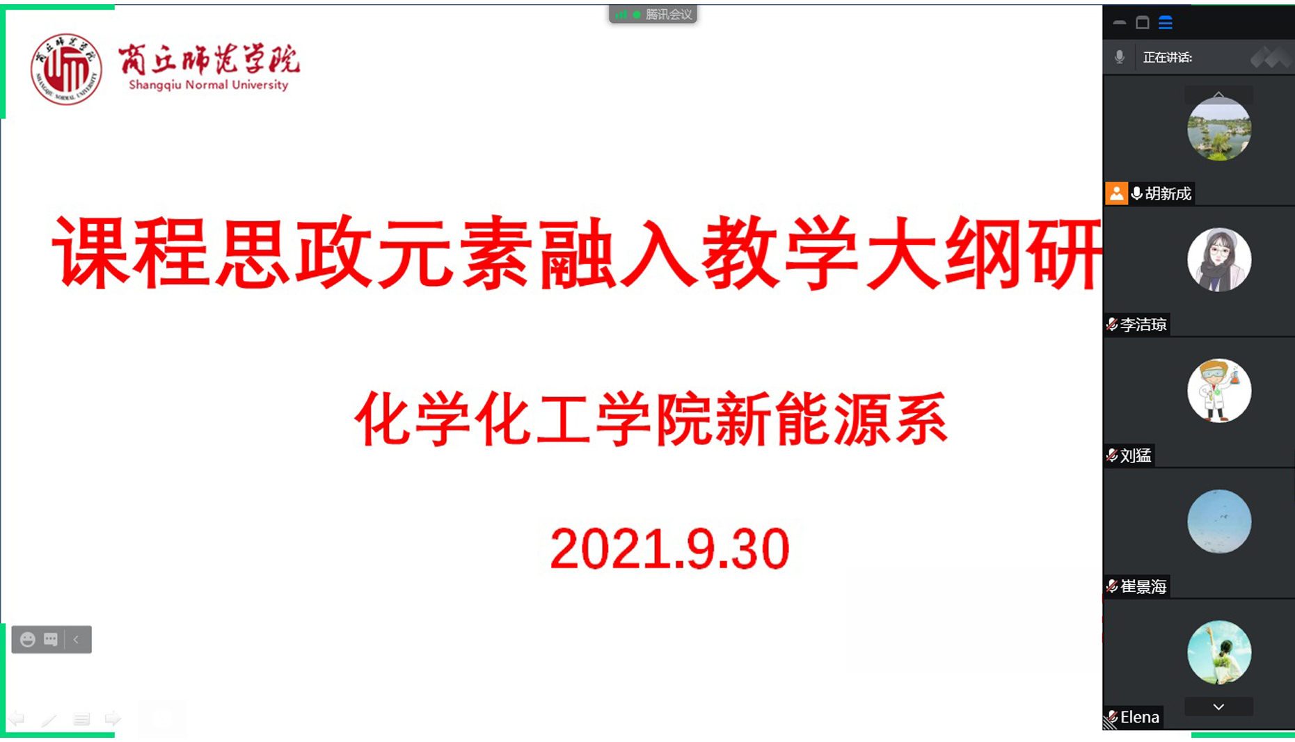 为深入贯彻落实习近平总书记关于教育的重要论述和全国教育大会精神,贯彻落实中共中央办公厅、国务院办公厅《关于深化新时代学校思想政治理论课改革创新的若干意见》,根据《BEAT365英国官网网站关于制定2020版课程教学大纲的指导意见》和学校相关部署,9月30日上午,beats365唯一官方网站新能源系通过腾讯会议召开了课程思政元素融入教学大纲研讨会。会议由系主任魏伟主持,新能源科学与工程系全体教师参加了此次活动。