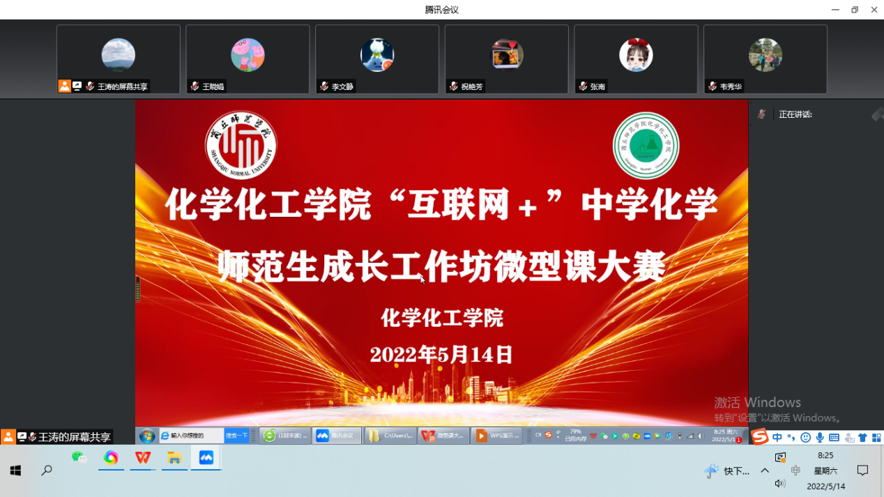 为了进一步提升师范生公司产品能力,强化师范生对课堂教学的把控能力,5月14日,公司“互联网+”中学化学师范生成长工作坊微型课大赛在睢阳校区1#503教室通过腾讯会议线上线下同时进行。本次微型课大赛评委老师由校外14位工作坊坊主、公司7位专业老师组成,全体工作坊学员线上参与观摩,大赛由副经理王涛主持。