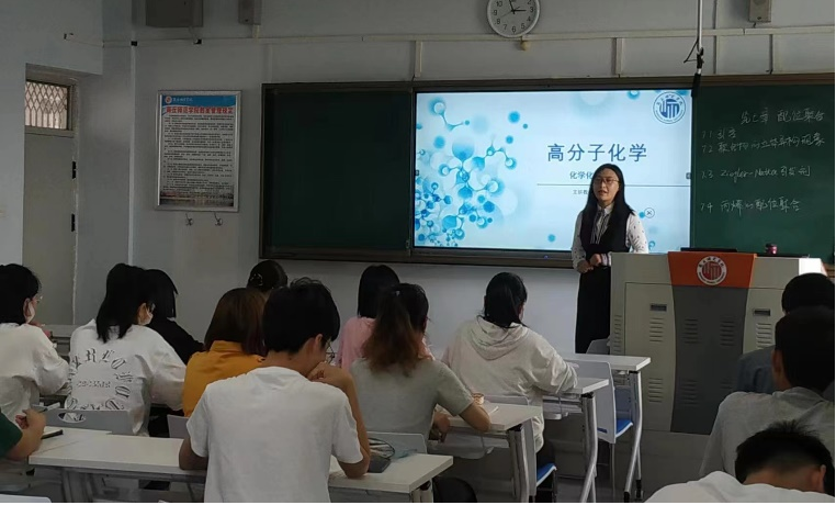 2022年5月19日下午第5节,beats365唯一官方网站邵梅玲老师《高分子化学》课程教学范式改革公开课在睢阳校区1#513教室进行。材料系主任陈亚以及近两年新进青年教师进行了课堂观摩。