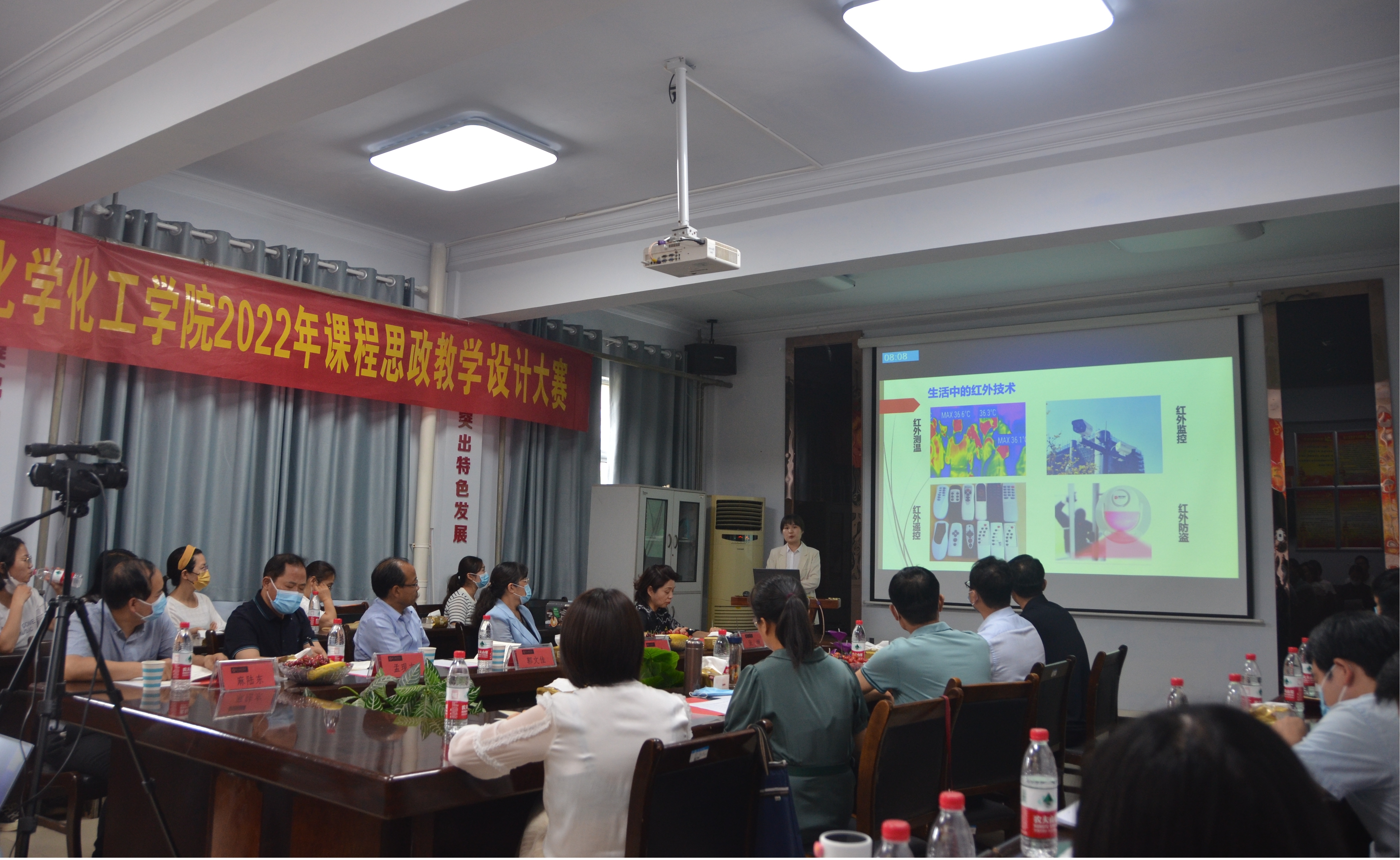 赛前,李海涛介绍了学院“一机制、一引领、四融合”党建工作品牌以及“党建+课程思政”深度融合模式下学院在前期课程思政建设过程中取得的成绩。参赛教师们以“说课+讲课”的方式从课程的教学设计、思政元素融入等方面进行了阐述与展示,多角度展示了如何将专业知识与思想政治教育有机结合、深度融合,从而实现“知识传授”和“价值引领”的有机统一。